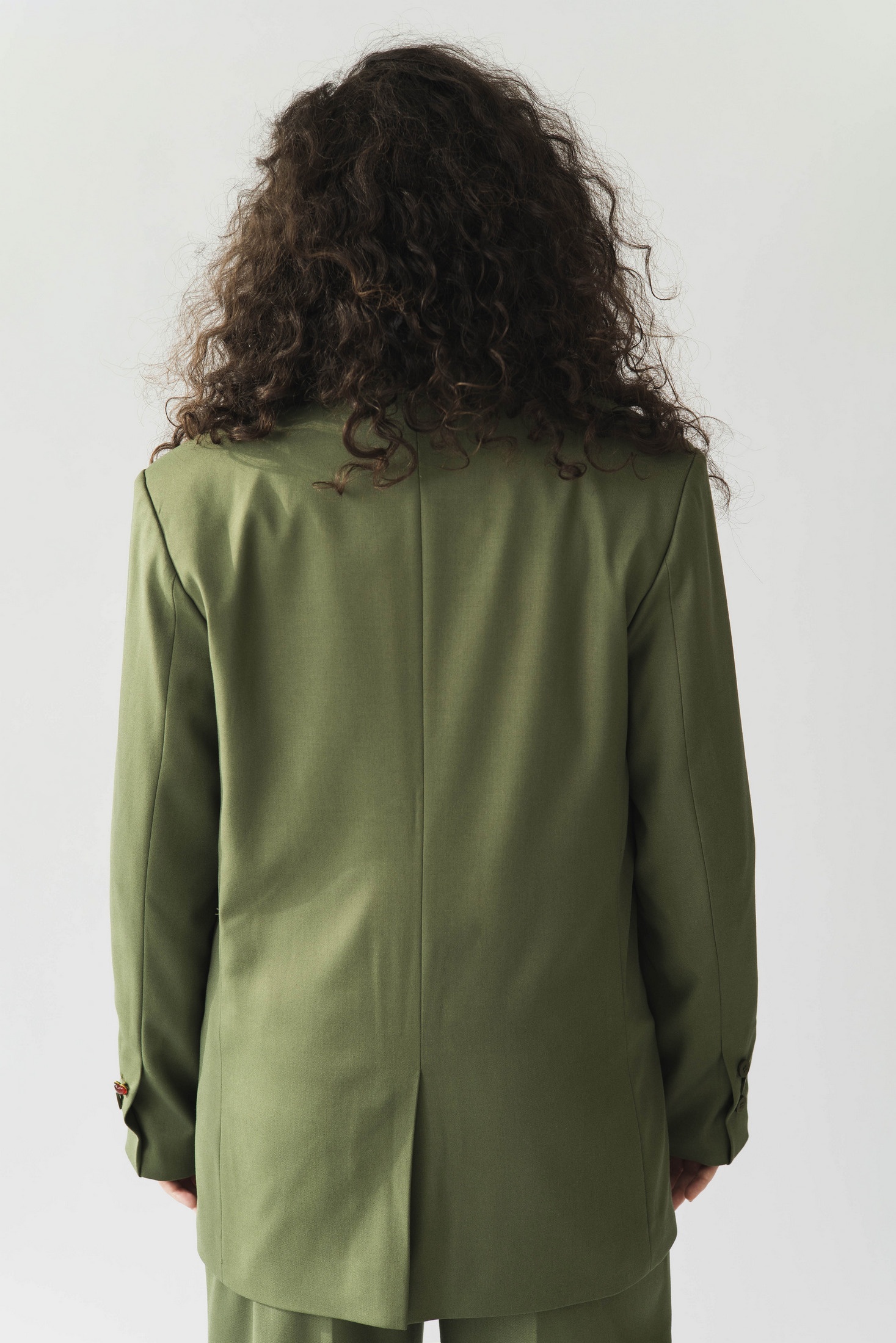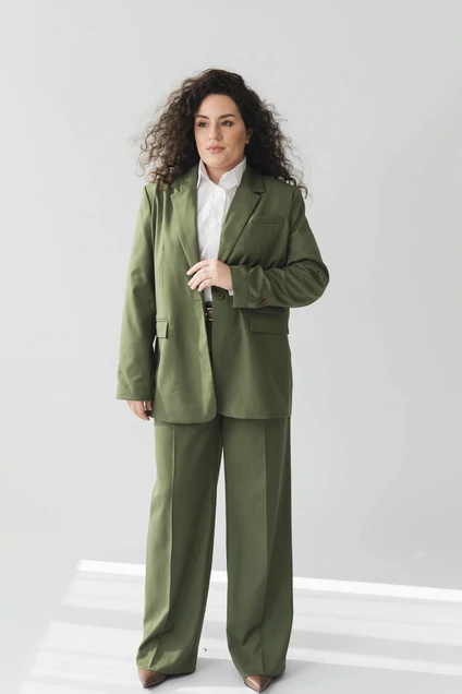 Модель идет в трех универсальных размерах: 44-46, 48-50, 52-54. Жакет прямого свободного кроя выполнен из лащенной текстильной поливискозы высокого качества. Однобортный жакет имеет английский воротник, прорезные карманы с патами, шлицу по спинке. Жакет на подкладке. Подкладка жаккардовая в тон основной ткани. Женский жакет стеговается на 1 пуговицу. Пуговицы маловые в тон закета, на левом рукаве 1 металлическая пуговица с эпоксидной смолой в виде сердечка, которая является декоративным элементом. Жакет выполнен как в классическом однотонном вариенте, так и в трендовом направлении колорблок, где два красивый оттенка дополняют друг друга и дают настоящий полет фантазии в вариативности сочетиний и комбинаций образов. Длина изделия по спинке - 72 см, длина рукава - 60 см. Собрать костюм можно с брюками артикулы: Р-025 или Р-026