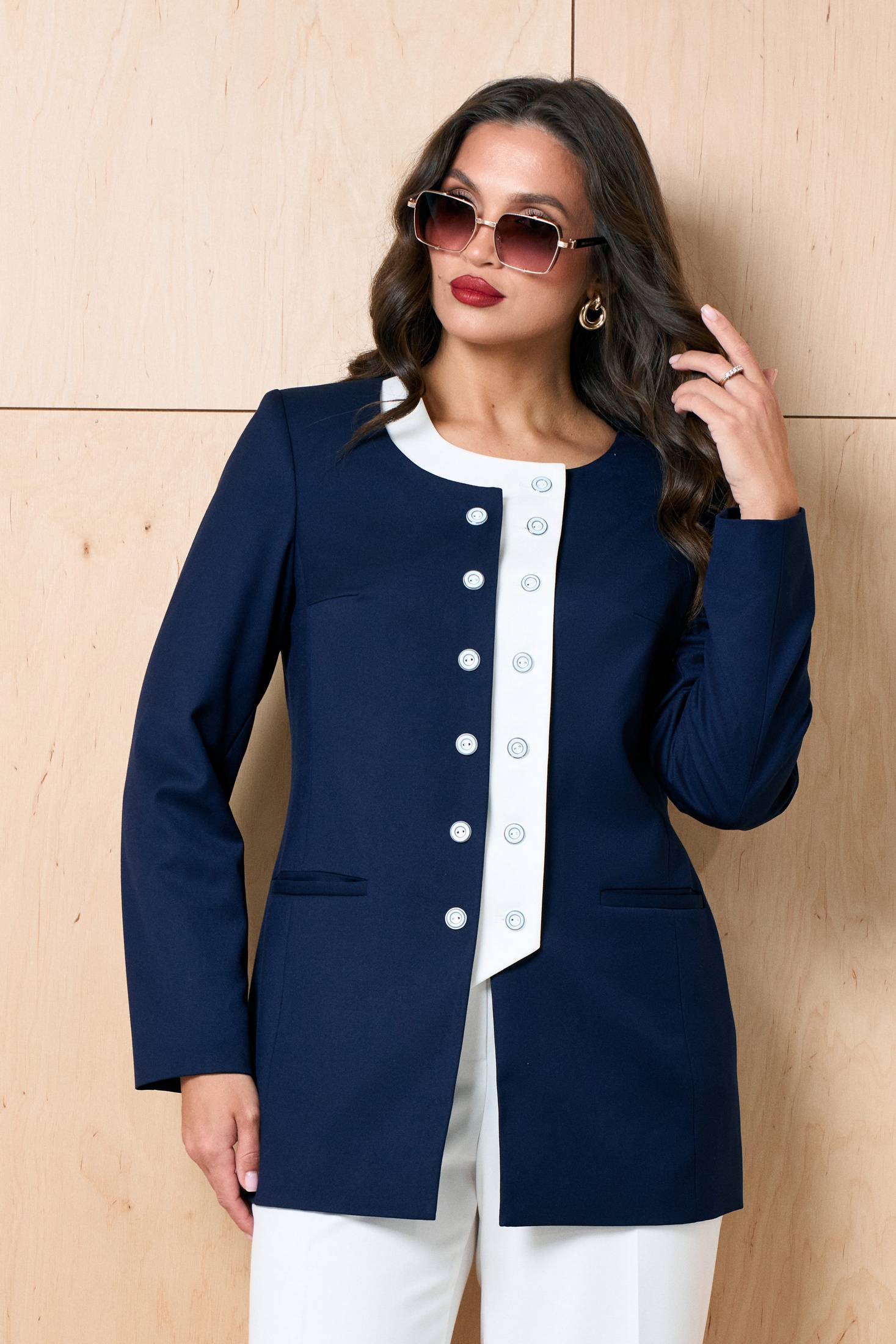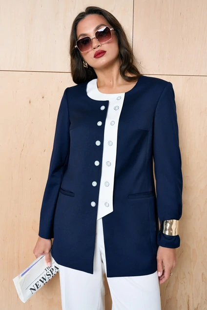 Жакет 5034 Lissana от коллекции бренда Lissana сочетает в себе элегантность и комфорт. Изготовленный из вискозы, полиэстера и спандекса, этот жакет предлагает отличную посадку и удобство при носке. Уникальный фасон с округлым вырезом горловины и смещенной застежкой на петли и пуговицы делает его идеальным для офиса и деловых встреч. Декоративные пуговицы и контрастные детали добавляют стильного настроения, а карманы в нижней части делают его практичным. Жакет с длинными рукавами и подкладкой прекрасно подходит для осеннего сезона. Насладитесь классическим стилем в темно-синем оттенке, который подчеркнет вашу индивидуальность и профессионализм.