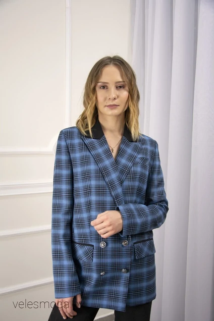 Двубортный жакет свободного покроя из костюмного текстильного полотна в клетку