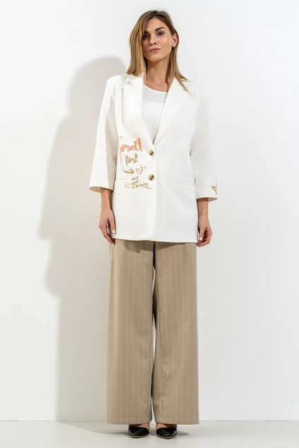Жакет прямого силуэта с центральной застёжкой на петли-пуговицы,принтом на правой полочке. длина-75 см