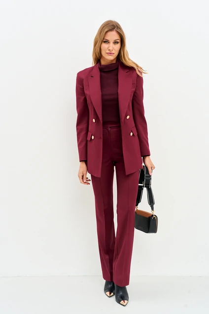 Жакет женский полуприлегающего силуэта на подкладке со смещенной бортовой застежкой на петли, пуговицы. Воротник пиджачного типа. Рукав втачной двухшовный с имитацией шлицы и отделочными пуговицами. Детали переда и спинки с рельфами. На деталях переда обработаны прорезные карманы с клапаном и двумя обтачками, на левой полочке обработан верхний прорезной карман с листочкой. Спинка со средним швом и двумя шлицами.длина изделия 73-77см, длина рукава 61-65см