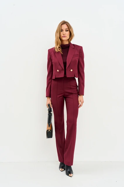 Жакет женский полуприлегающего силуэта на подкладке со смещенной бортовой застежкой на петли, пуговицы. Воротник пиджачного типа. Рукав втачной двухшовный с имитацией шлицы и отделочными пуговицами. Детали переда и спинки с рельфами. На деталях переда обработаны клапанына левой полочке обработан верхний прорезной карман с листочкой. Спинка со средним швом и двумя шлицами.длина изделия 73-77см, длина рукава 61-65см