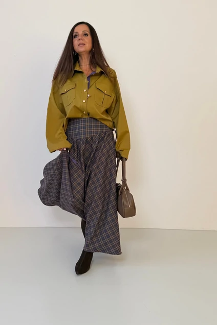 Жакет женский с центральной бортовой застежки на петли пуговицы. Воротник стояче отложной. Рукав втачной спущенный, одношовный. Низ рукава и жакета с кулисой, в которые втянуты завязки.Спинка с кокеткой. На деталях переда обработаны накладные карманы с клапанами.