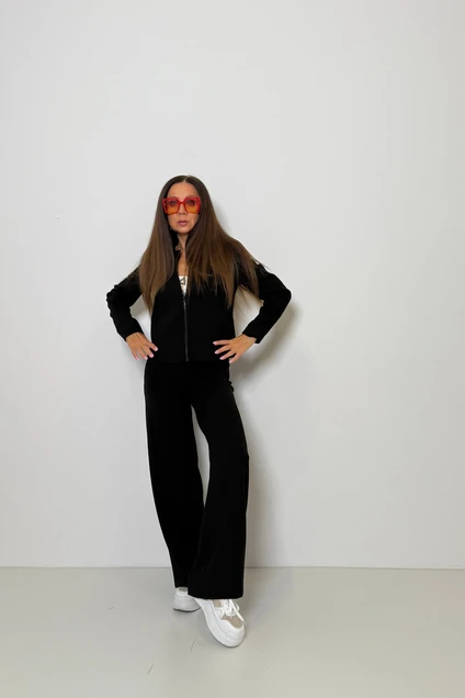 Элегантный женский жакет в классическом черном цвете. Дизайн изделия полуприлегающий, создающий изысканный и утонченный силуэт. Модель оснащена удобной центральной застежкой на тесьму "молния", которая добавляет практичности и современной эстетики. Особую изысканность жакету придают рельефы на передней части и спинке, благодаря которым фигура зрительно выглядит более стройной. В рельефах переда эффектно обработаны карманы в швах, что является не только функциональным, но и стильным решением. Этот жакет станет идеальным выбором для создания образов в деловом и повседневном стиле.