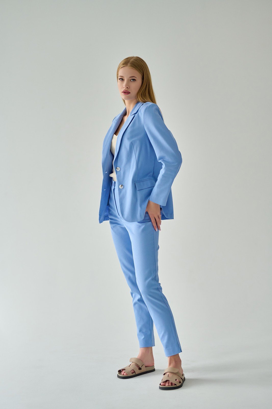 Сегодня невозможно представить современный гардероб без жакета! Жакет универсального кроя - удобство и стиль в одном исполнении. Обеспечивающий комфортную носку прямой силуэт, по спинке средний шов, по переду талиевые вытачки. Жакет однобортный, с отложным воротником и лацканами, застёжка на петли и пуговицы. Для вашего удобства по переду жакета предусмотрены функциональные прорезные карманы «в рамку» с клапаном. Плечевой пояс оформлен при помощи плечевых накладок. Длинный двухшовный втачной рукав не будет сковывать движений. Жакет выполнен без подкладки. Натуральность состава ткани обеспечит комфорт в носке, так как основными свойствами её являются воздухопроницаемость и гигроскопичность. Также изделие из хлопкового джинса износостойко, не выцветает, почти не мнётся, так что вы будете всегда чувствовать себя уверенно. Комбинируйте жакет с брюками нашего бренда (модель 835дс) и вы получите невероятный костюм, подходящий как для офиса, так и для прогулки.