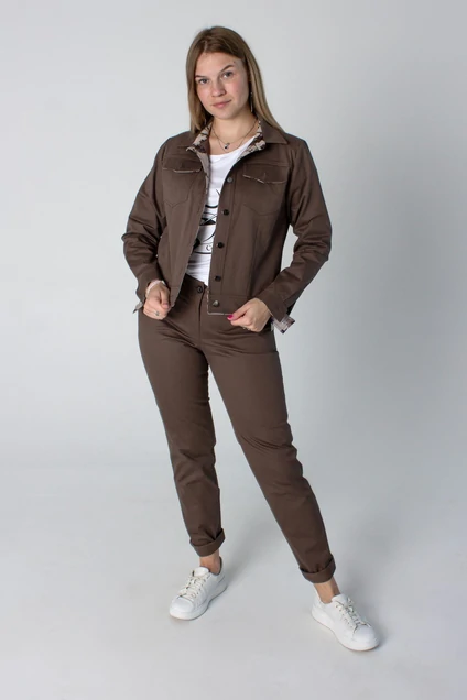 Прямой силуэт. Накладные карманы. Длинный рукав. Отложной воротник. Застёжка - планка на пуговицах. Длина изделия: 65 см длина рукава: 62 см