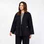 Льняной жакет прямого силуэта с цельнокроеными рукавами с отложными манжетами. Застежка двубортная на пуговицы в натуральном стиле. На переде обработаны карманы с широкими листочками. Спинка со средним швом. Дополняет изделие широкий пояс из основной ткани с натуральной пряжкой. Изделие без подкладки.