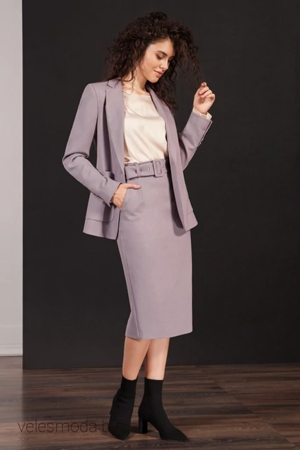 Элегантный жакет из поливискозной костюмной ткани, полуприлегающего силуэта с застежкой на одну пуговицу. Воротник пиджачного типа с отложными лацканами. Перед с большими накладными карманами и нагрудным карманом с листочкой. Рукава втачные длинные со шлицами, застегивающимися на декоративные пуговицы. Изделие на поливискозной подкладке с отделочным кантом и внутренним карманом.