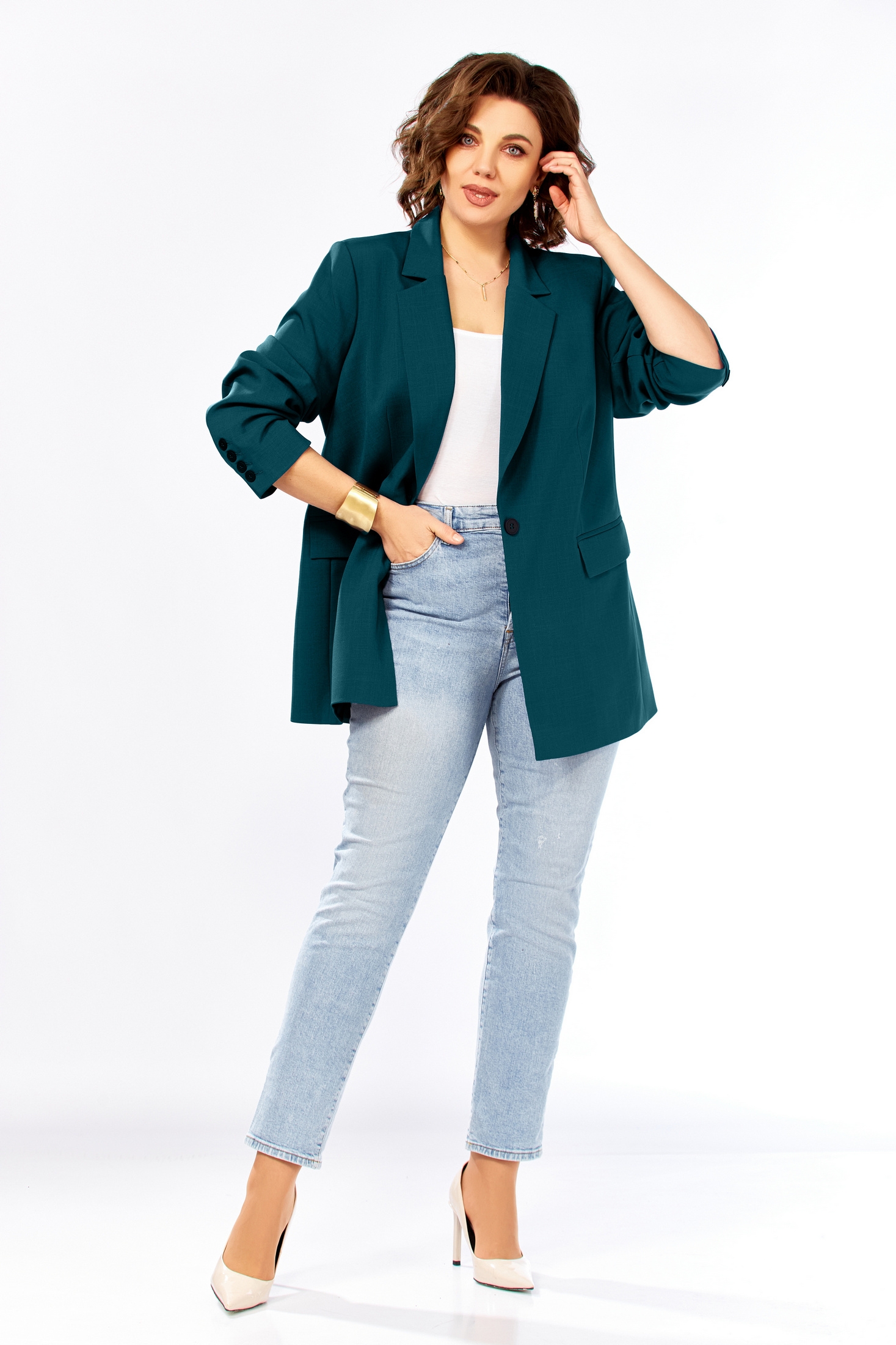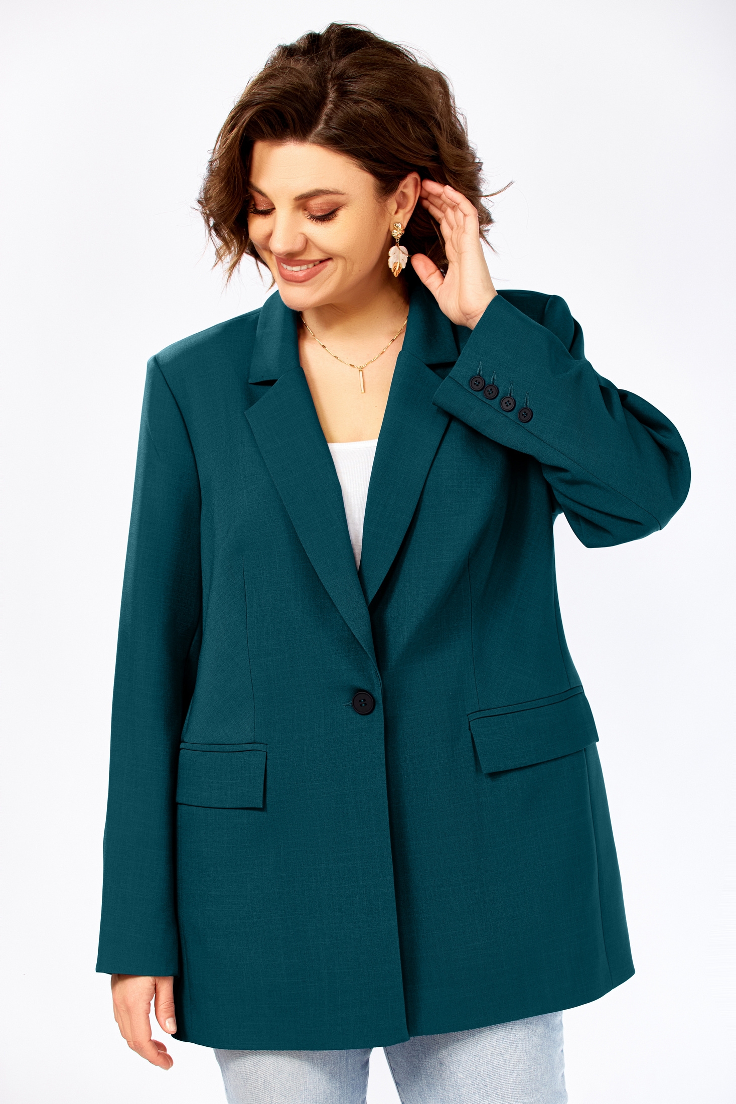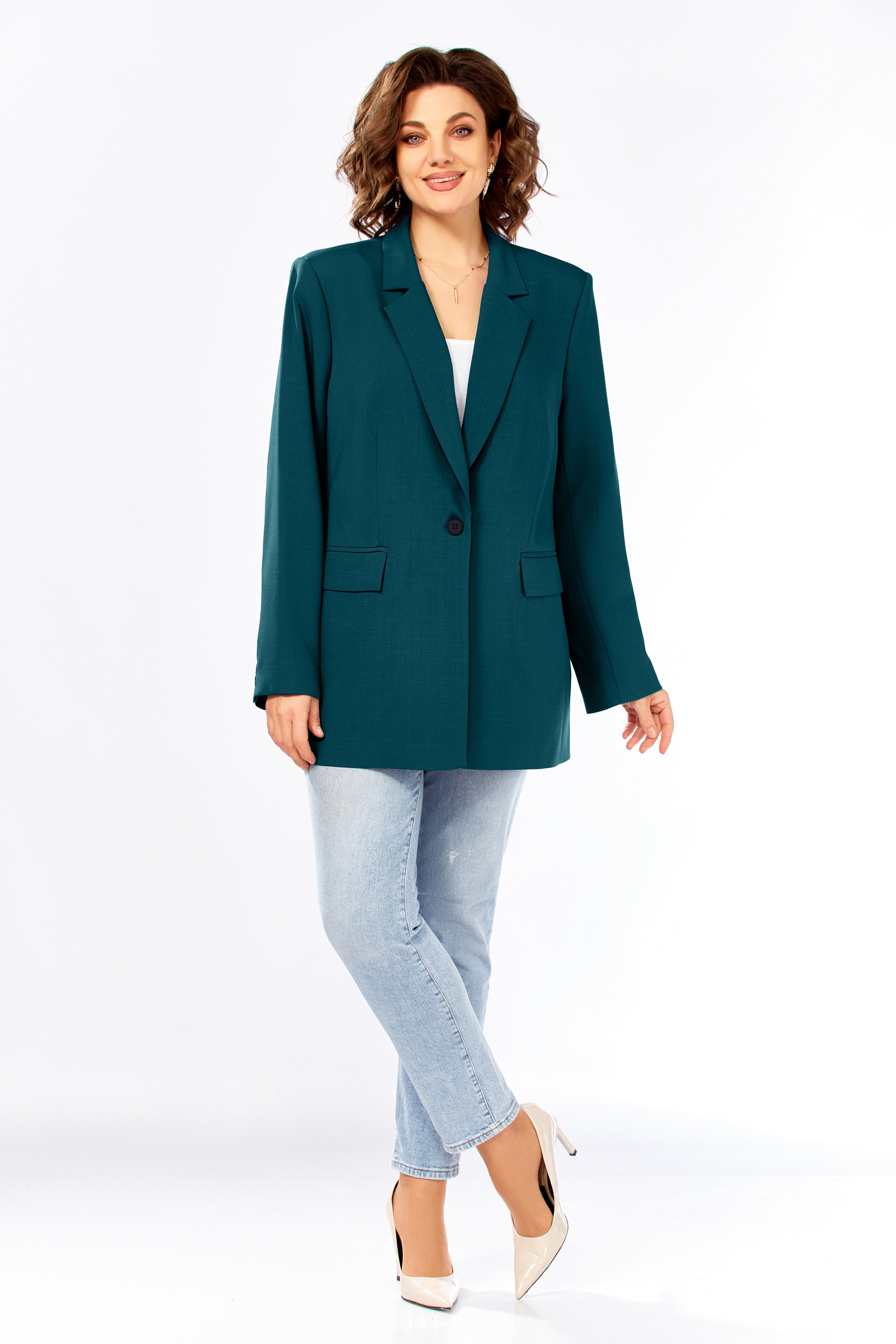 Жакет 986 морская волна Ольга Стиль — стильный выбор для нынешнего сезона. Коллекция бренда Ольга Стиль предлагает прямой силуэт с пиджачным воротником и застежкой на одну пуговицу. Большие карманы с клапанами добавляют функциональности и практичности этому жакету. Материал сочетает полиэстер для прочности, вискозу для комфорта и спандекс для легкой эластичности, обеспечивая удобную посадку. Длинный двухшовный рукав со шлицей на четыре пуговицы добавляет классическую нотку в этот повседневный образ. Подходит для осени и теплой зимы, подчеркивает вашу индивидуальность благодаря насыщенному глубокому цвету морская волна.