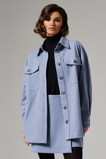 Жакет рубашечного типа, самая трендовая вещь этого сезана. Жакет свободного силуэта, со спущенной линиией плеча, с планкой на петли пуговицы, двумя большими нагрудными карманами, линия низа фигурной формы, Спинка с кокеткой . Рукав длинный на манжете. Трендовый жакет- это основа женского гардероба, должен быть практичным, удобным и при этом стильно смотреться, лучшим образом дополняя look. Подкладка: Полиэстер 55%; вискоза 45%