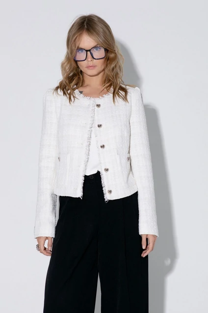 Укороченный жакет из фактурной ткани в стиле «шанель».