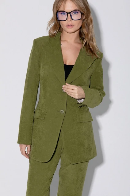 Приталенный жакет из текстильной фактурной ткани под бархат.