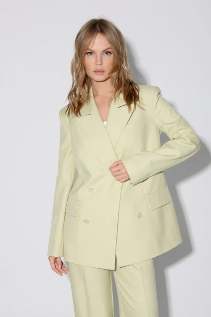Детали: жакет свободного покроя и полуприлегающего силуэта, двубортная застежка на петли и пуговицы, отрезные бочки, пиджачный воротник, функциональные карманы, жакет на подкладке.
