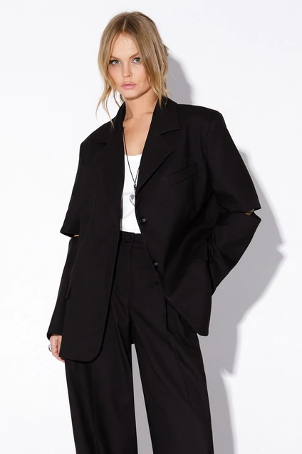 Детали: жакет свободного покроя, прямой силуэт, застежка на петли и пуговицы, функциональные карманы, жакет на подкладке.