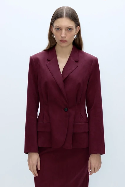Замшевый приталенный жакет со складками.