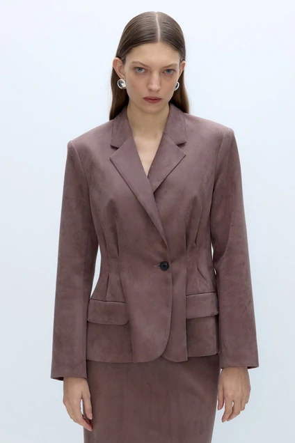 Замшевый приталенный жакет со складками.