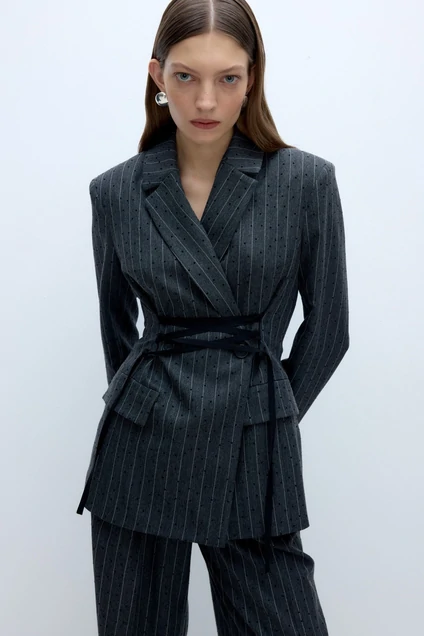 Жакет с контрастной шнуровкой по талии.