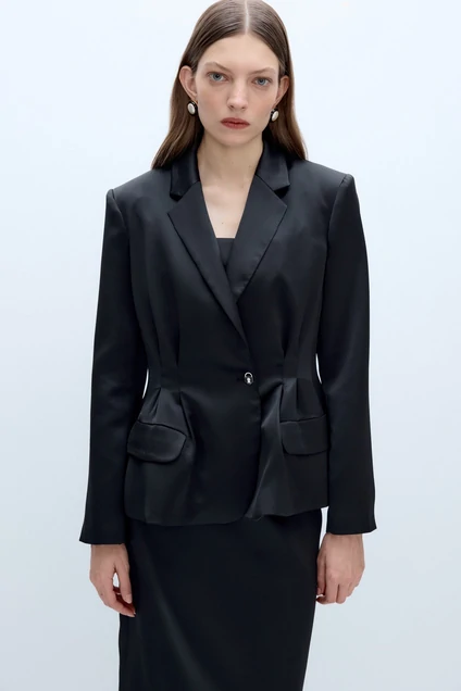 Атласный приталенный жакет со складками.