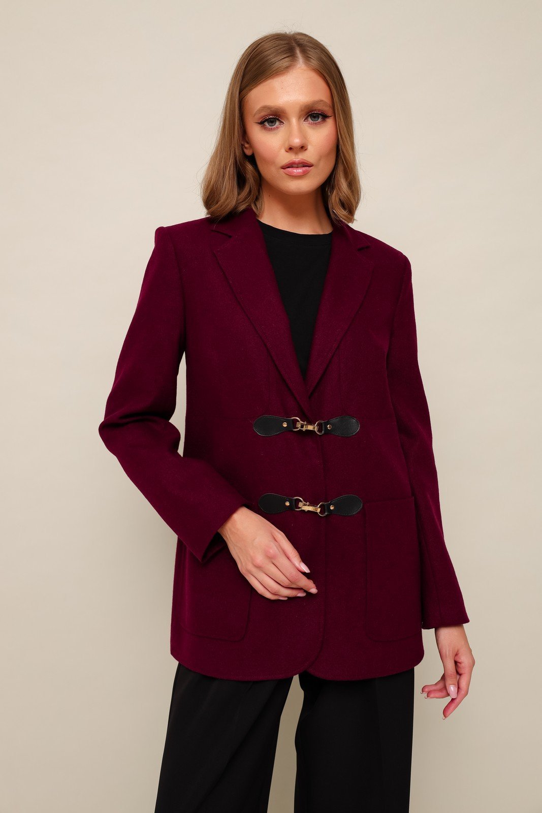 Стильный жакет полуприлегающего силуэта,выполнен из полушерсти. Застежка центральная на декоративные крючки и потайные кнопки. Воротник пиджачного типа с отложными лацканами. Спереди обработаны накладные