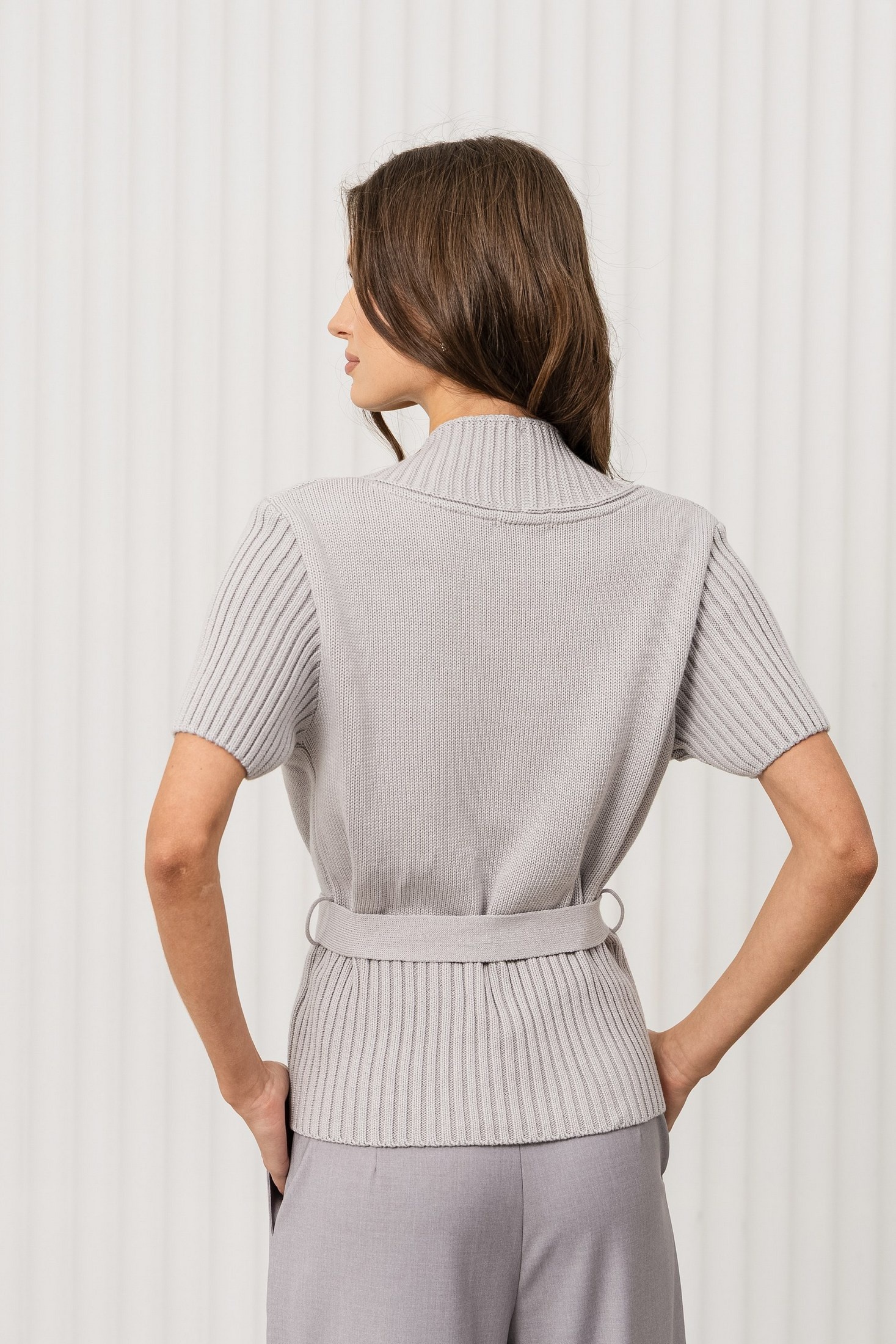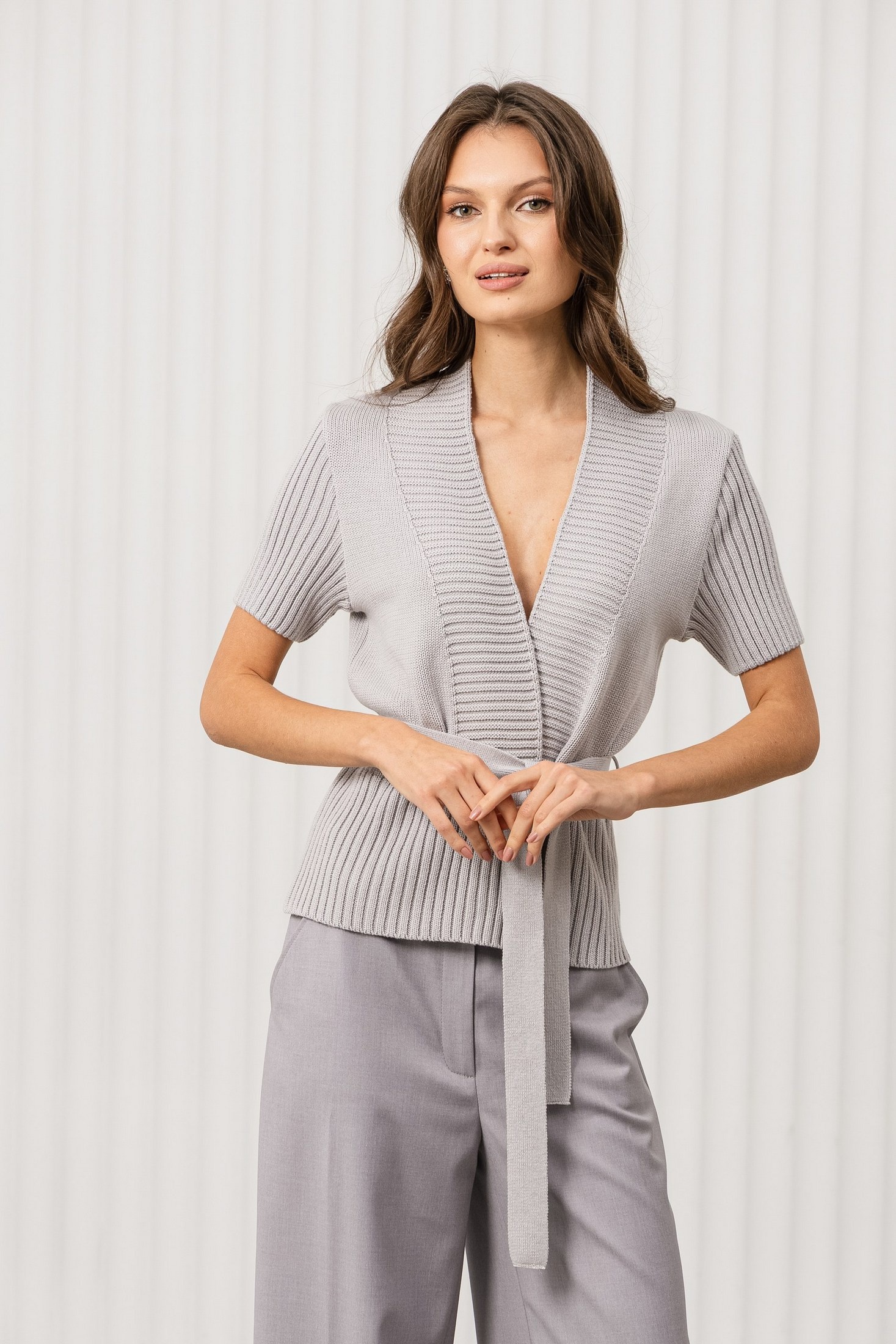 Жакет РВ0409-ХЛ2 светло-серый Romgil. Коллекция бренда Romgil предлагает стильный вязаный жакет, который сочетает комфорт и моду. Изготовленный из мягкой пряжи на основе хлопка и пан, он обеспечивает комфорт и сохраняет форму после стирок. Жакет имеет пояс на талии, подчёркивающий силуэт, и короткий рукав, идеально подходящий для теплых дней. Светло-серый цвет легко комбинируется с другими элементами гардероба. Этот универсальный вариант идеально подходит для повседневного или вечернего гардероба, подходящий для работы или прогулок прохладными вечерами.