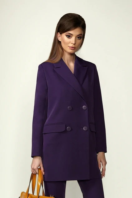 Элегантный жакет из костюмной ткани тёмно-сиреневого цвета добавит изысканности к вашему гардеробу. Модель прямого силуэта дополнена двубортной застежкой на две петли и пуговицы и одну потайную пуговицу, что создаёт безупречный образ. Воротник с отложными лацканами пиджачного типа подчеркивает строгость стиля. Прорезные карманы с клапанами на передней части придают жакету дополнительное удобство и функциональность. Спинка выполнена без швов, что гарантирует идеальную посадку и комфорт в носке. Этот жакет станет основой для создания как деловых, так и более расслабленных образов.