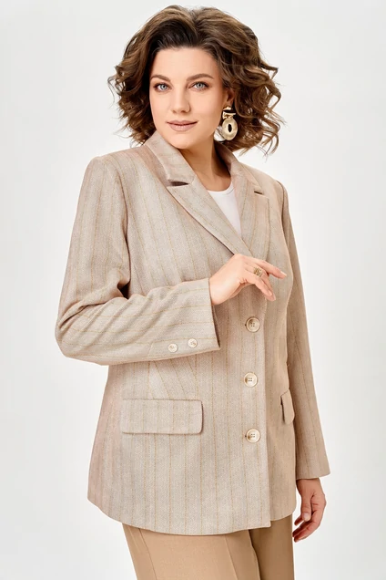 Жакет 910-1 Swallow от бренда Swallow — это изысканное дополнение к вашему гардеробу. Коллекция бренда Swallow воплощает стиль и комфорт благодаря использованию трикотажной костюмной ткани. Полуприлегающий силуэт и центральная бортовая застежка на три прорезные петли и пуговицы подчеркивают элегантность образа. Длина изделия по спинке составляет 70 см, а рукава, длиной 63 см, оснащены декоративными пуговицами. Жакет оснащен отложными лацканами, вертикальными рельефами и прорезными карманами с клапанами. Светлый оттенок делает эту модель универсальной для офисного и повседневного стиля. Идеально подходит для осеннего и весеннего сезона благодаря мягкости и прочности материала, в состав которого входят вискоза и полиэстер.