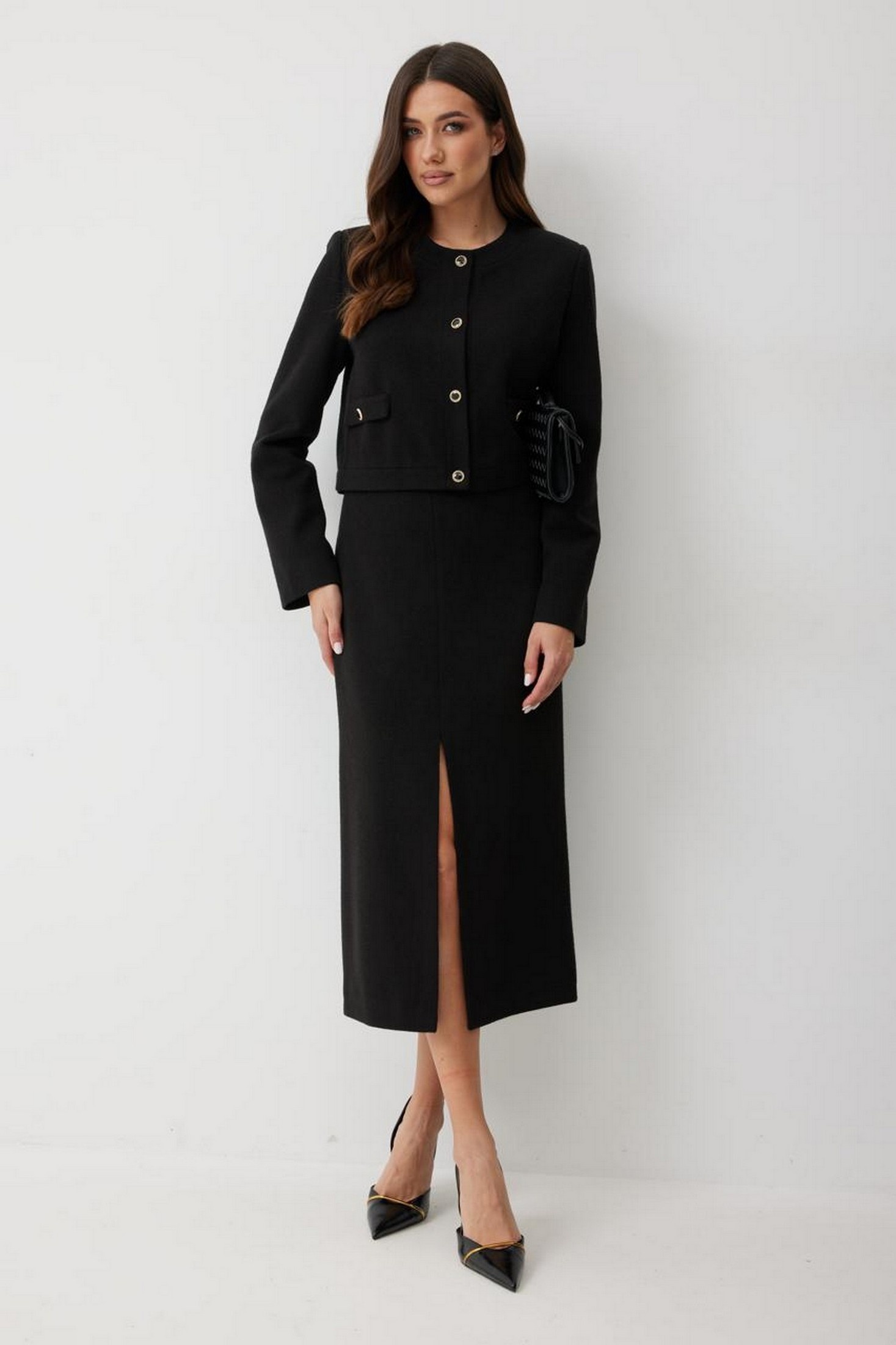 Эта модель идеально подходит для деловых, повседневных и элегантных образов. Жакет можно сочетать с брюками, юбками, платьями или джинсами. Базовый универсальный цвет делает жакет незаменимым для офиса, встречи, прогулки или свидания. Жакет составит стильный образ с юбкой М372 или М373.