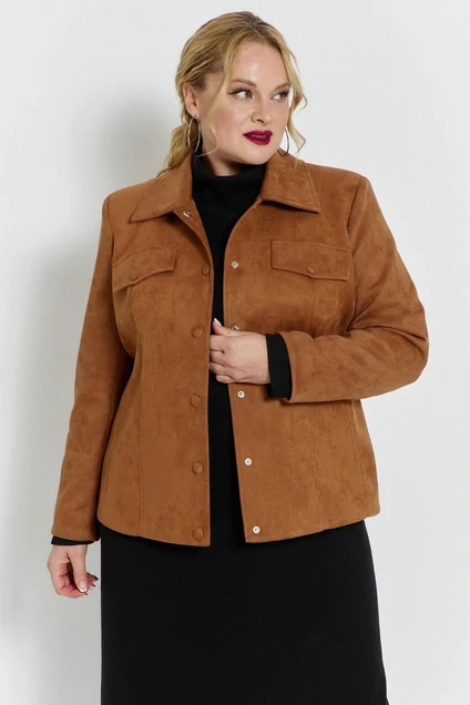 Жакет на подкладке, с отложным воротником, застёжкой на пуговицы и с декоративными клапанами .