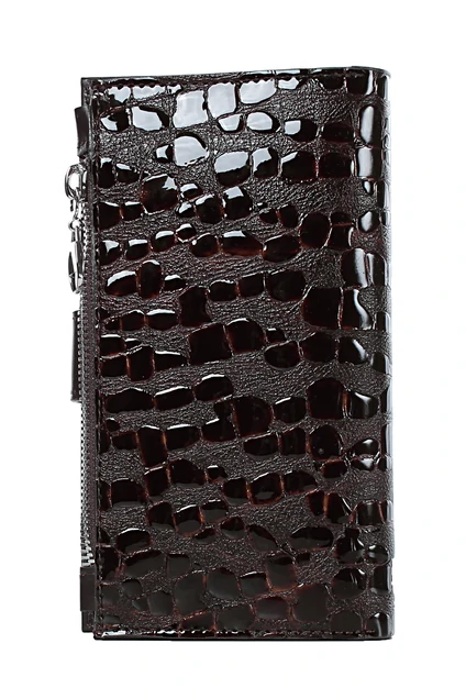 Портмоне на два отделения, одно отделение закрывается цупфером на кнопку, второе отделение для монет закрывается на застежку-молнию, с отделением для бумажных купюр, с открытыми карманами для пластиковых карт, с карманом с прозрачной вставкой. Цвет фурнитуры - никель.