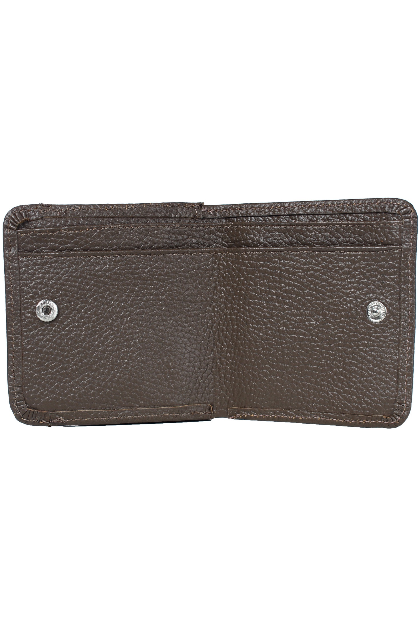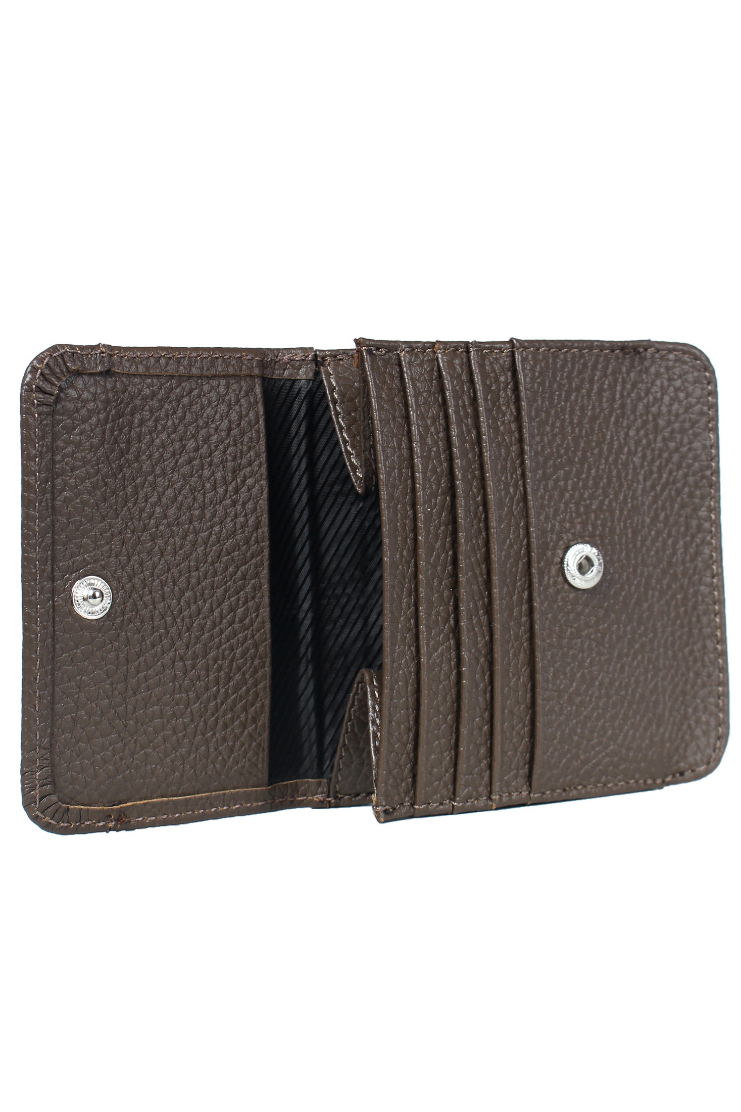 Портмоне закрывается на кнопку, с открытым карманом и с карманом, закрывающимся клапаном на кнопку, с краями в загибку.