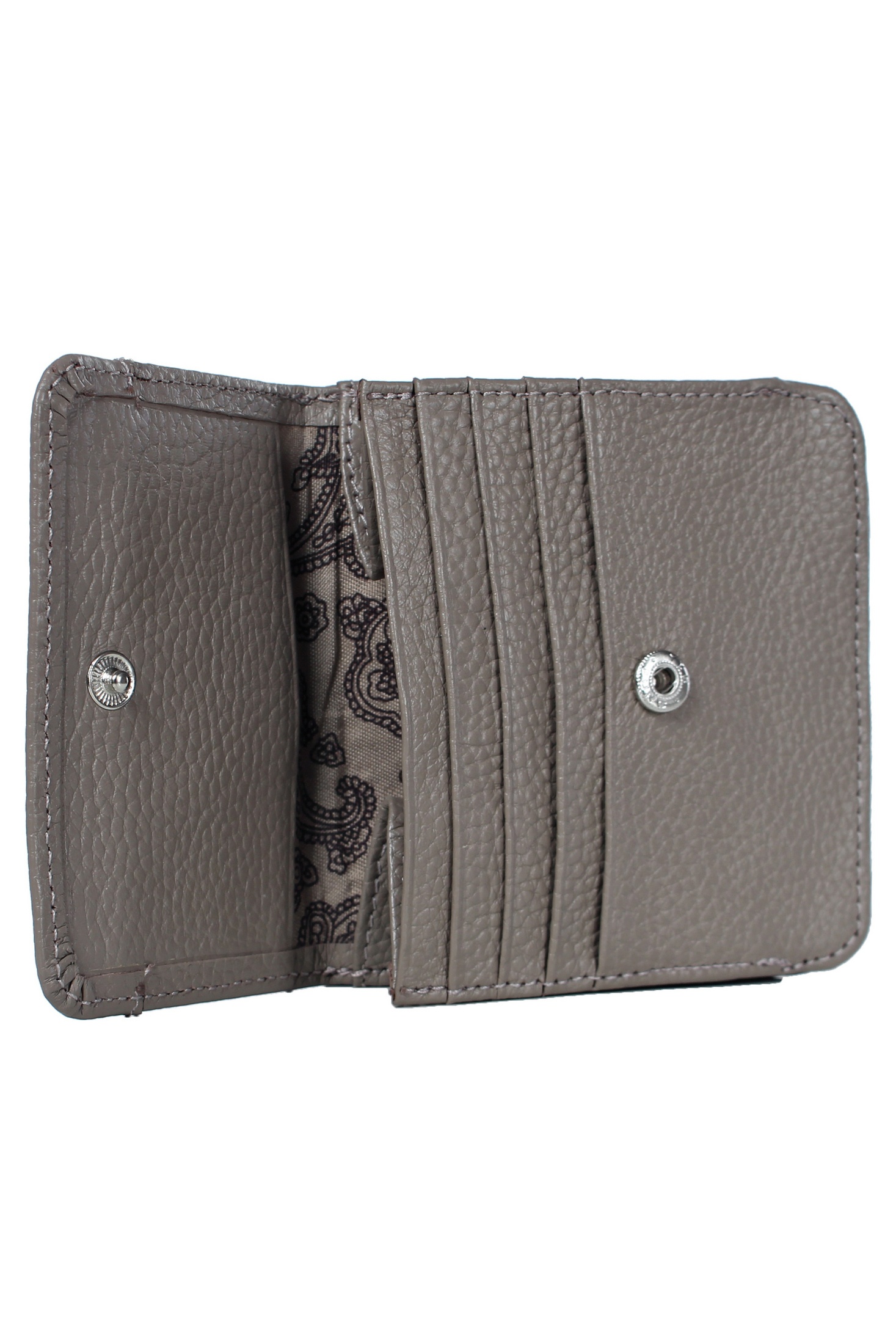 Портмоне закрывается на кнопку, с открытым карманом и с карманом, закрывающимся клапаном на кнопку, с краями в загибку.