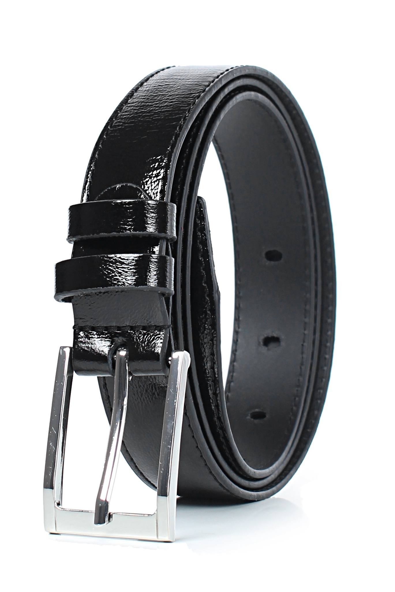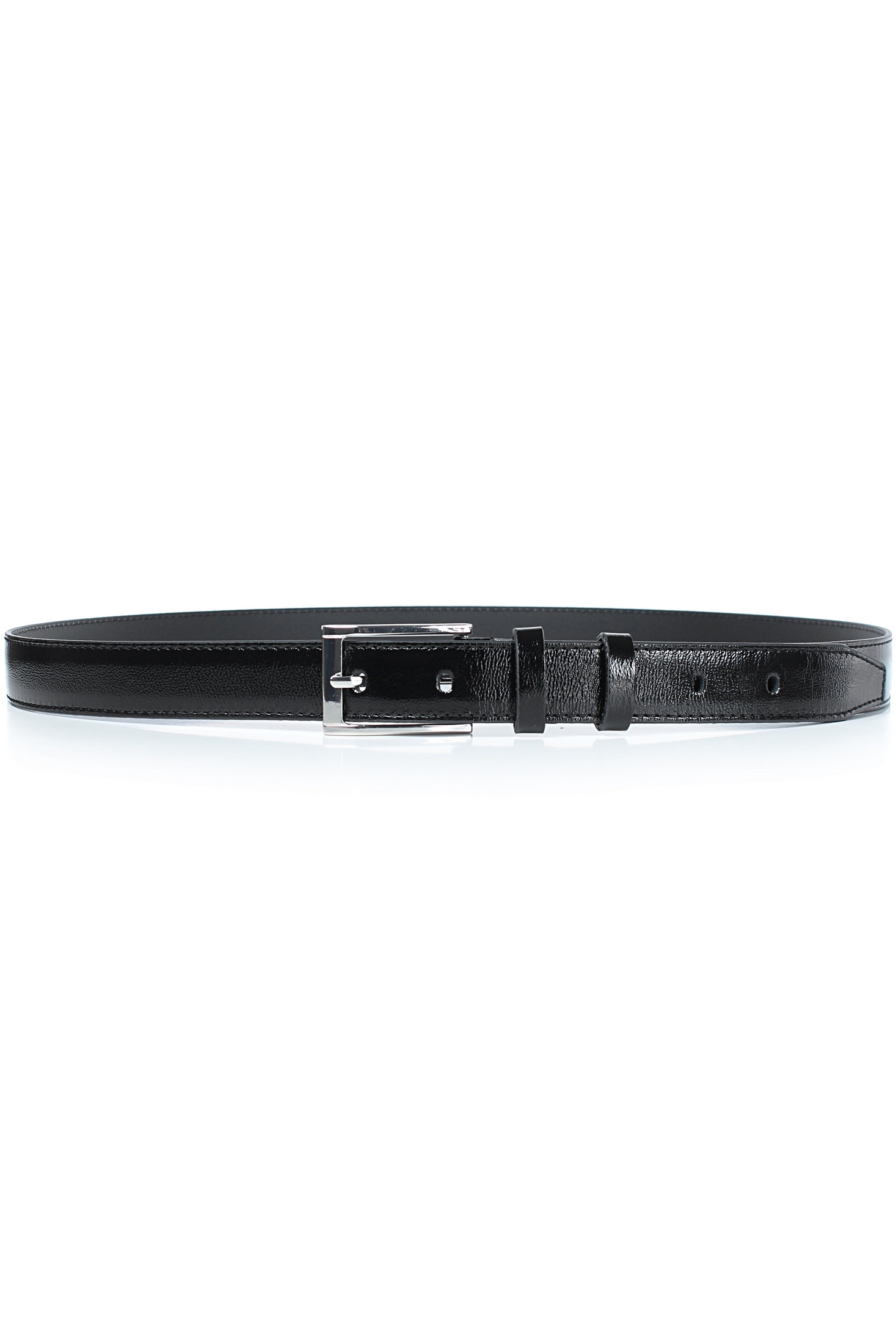 Ремень в обрезку, с обработкой краёв, с обстрочкой ремня по периметру, с пряжкой на запряжнике, с двумя шлёвками. Фурнитура - никель.