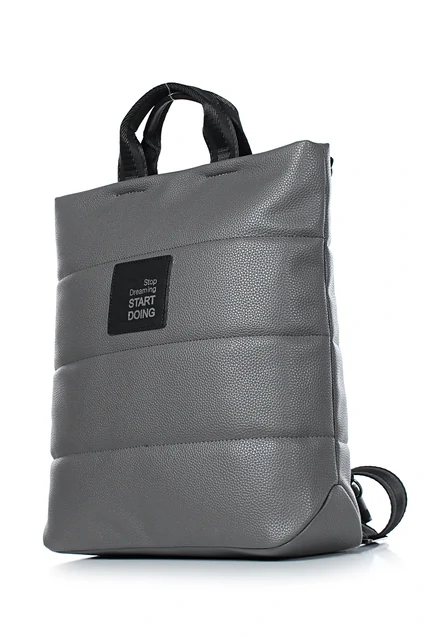 Рюкзак на одно отделение, закрывающееся на застежку-молнию, с двумя ручками длиной 270+-10 мм, с двумя съемными регулирующимися плечевыми ремнями максимальной длины 1010+-10 мм, с карманом на задней стенке, закрывающимся на застежку-молнию, с декоративной расстрочкой стенок, с накладкой с рисунком на передней стенке. Цвет фурнитуры - черный никель.