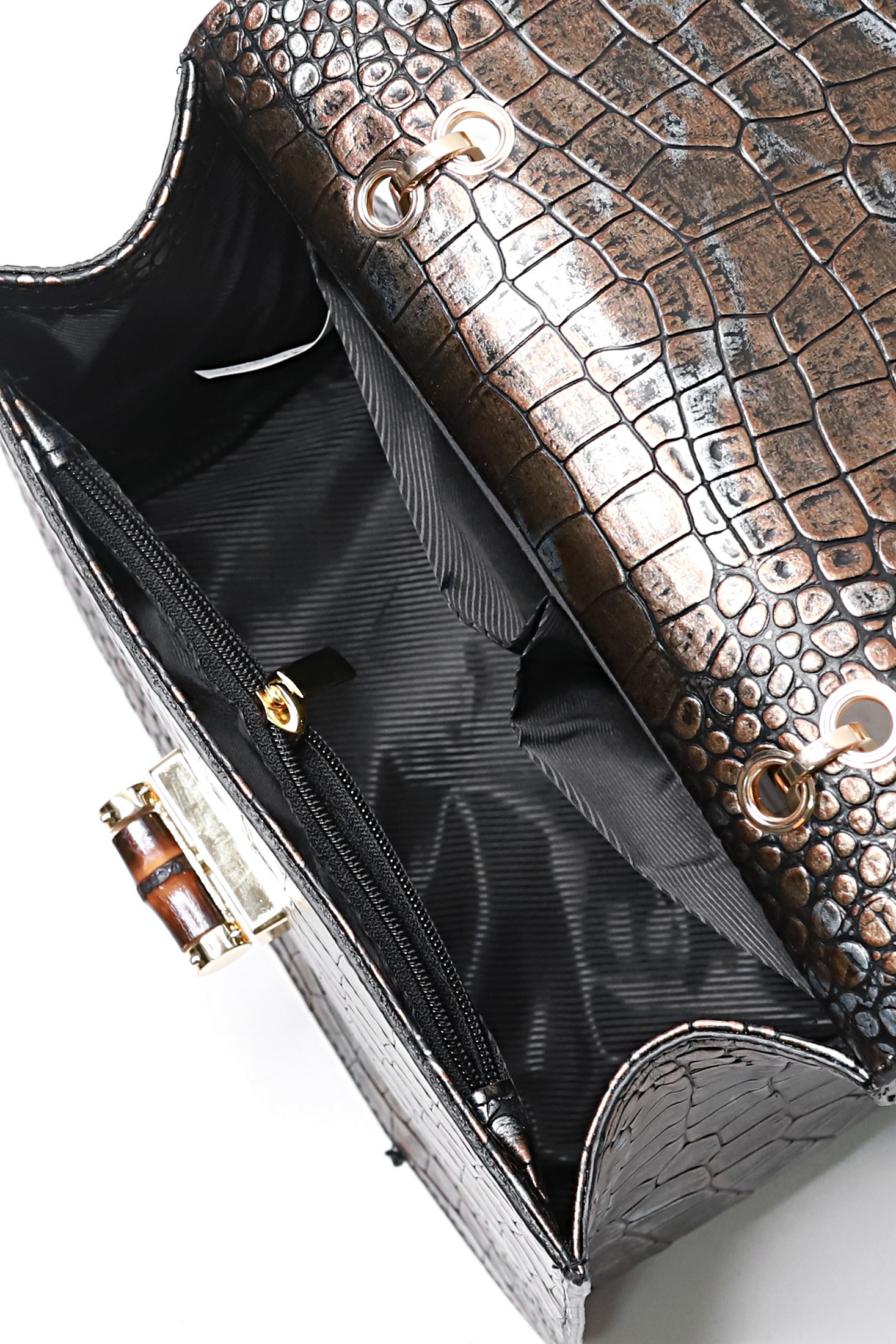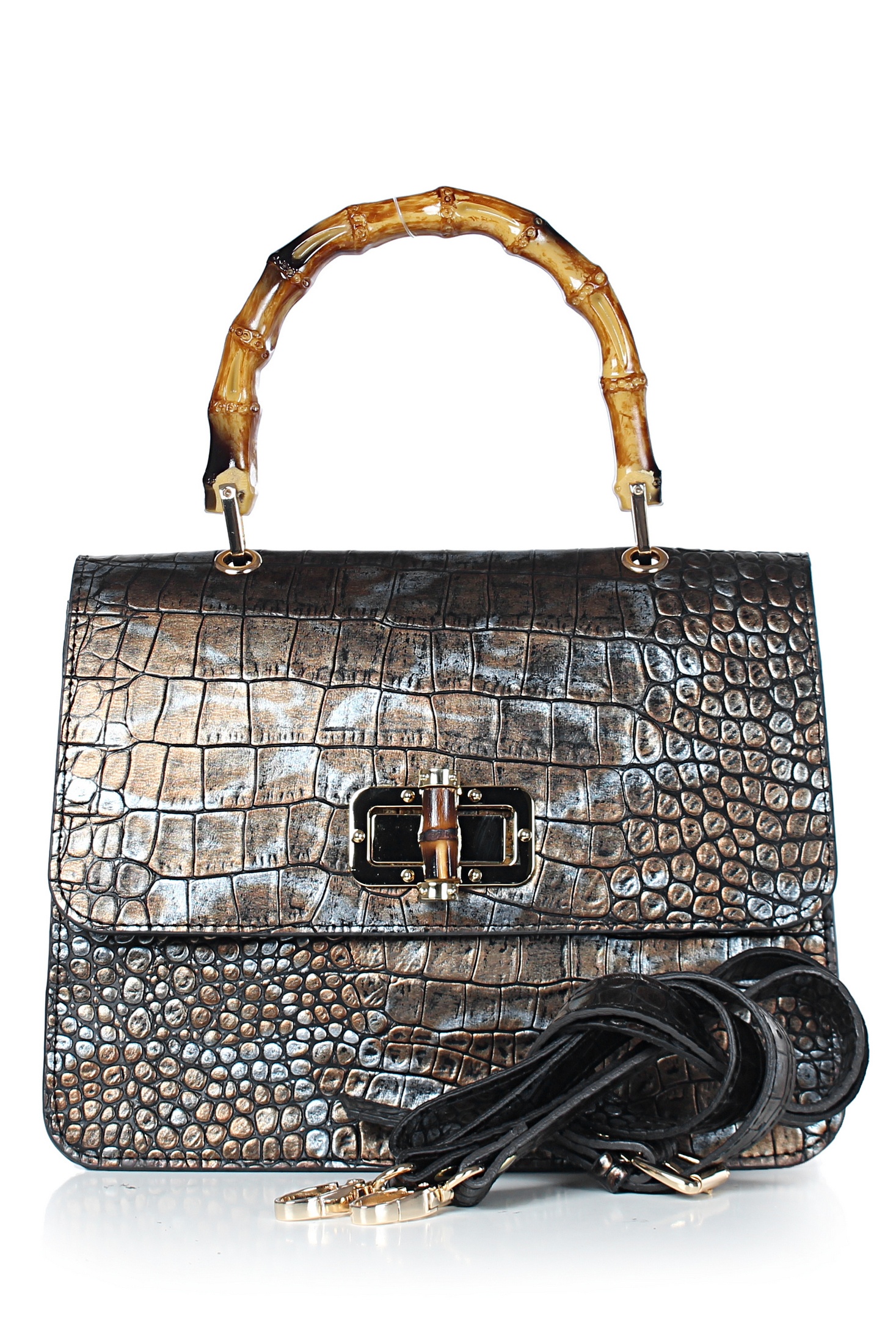Сумка на одно отделение, закрывающееся клапаном на замок-вертушку, с одной декоративной ручкой длиной 310+-10мм, со съемной регулирующейся ручкой-ремнем максимальной длины 1290+-10мм. Цвет фурнитуры - золото. Сумка на подкладке, с открытым карманом, с карманом-перегородка, закрывающимся на застежку-молнию, с футляром для пластиковых карт.