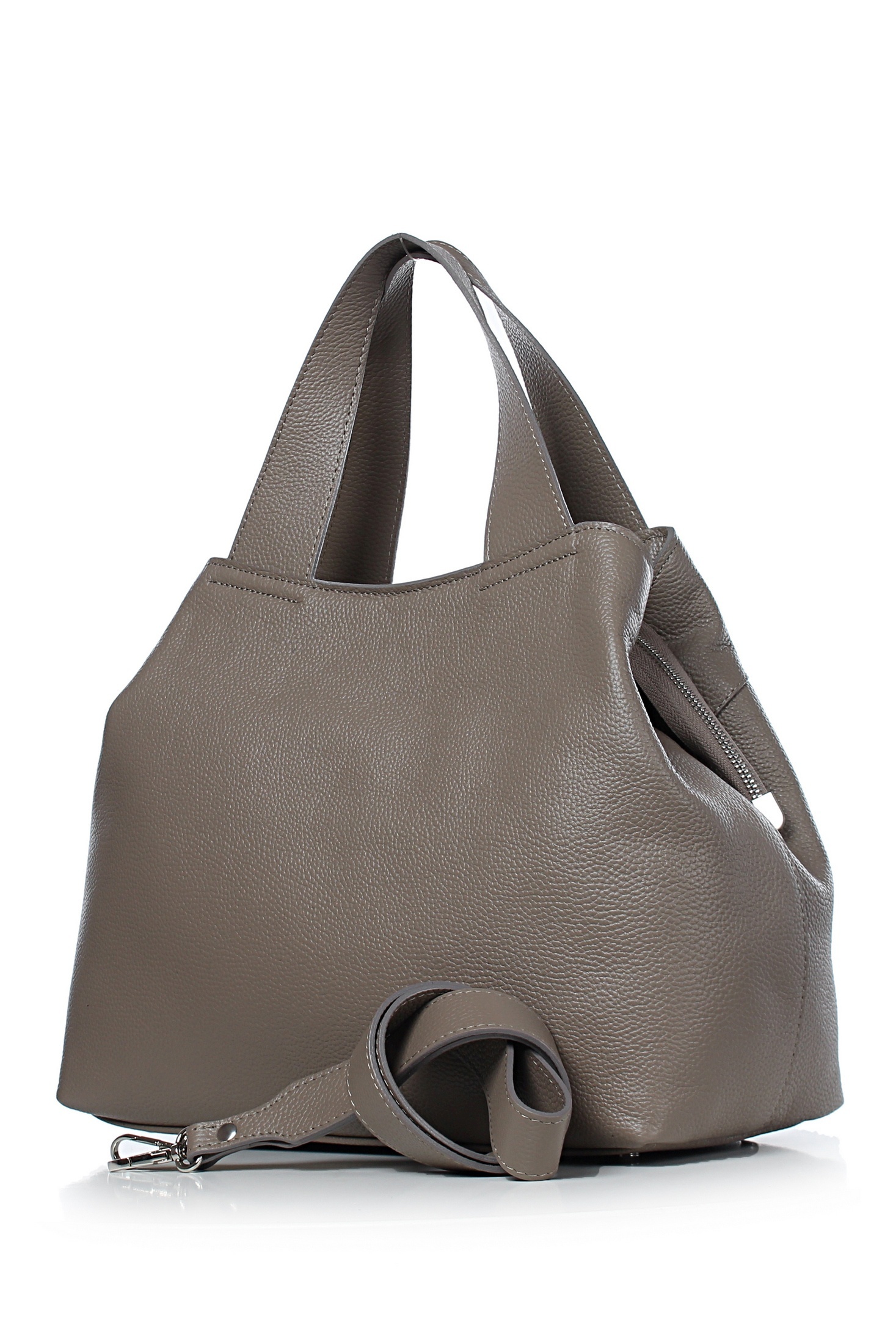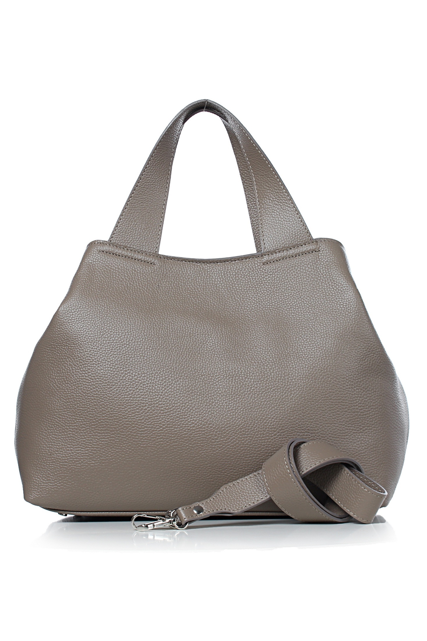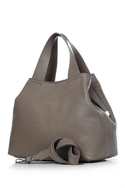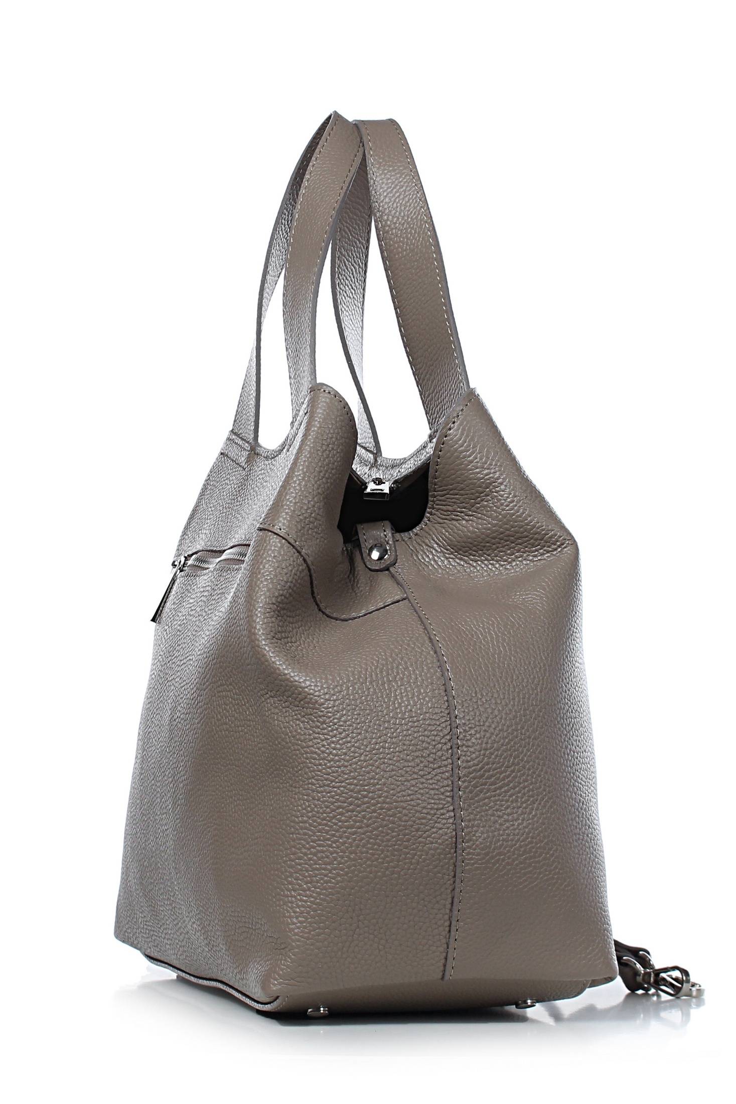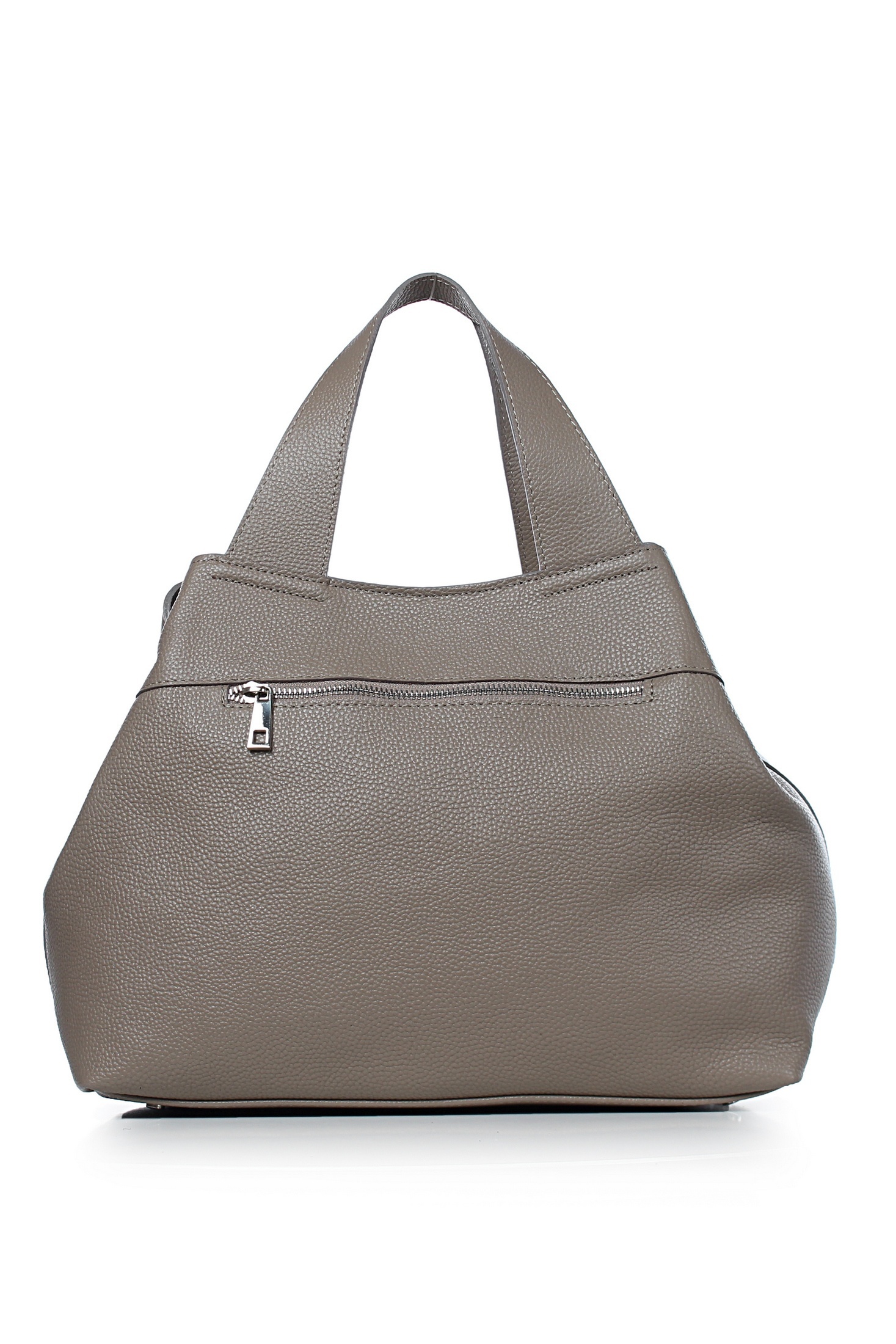 Сумка на одно отделение, закрывающееся на застежку-молнию, стягивается в верхней части стяжными ремнями на кнопку, с двумя ручками длиной 360+-10 мм, с украшением-лейбл на передней стенке, с карманом на задней стенке, закрывающимся на застежку-молнию. Цвет фурнитуры - никель. Сумка на подкладке, с открытым карманом с украшением, с подвесным карманом, закрывающимся на застежку-молнию, с футляром для пластиковых карт.