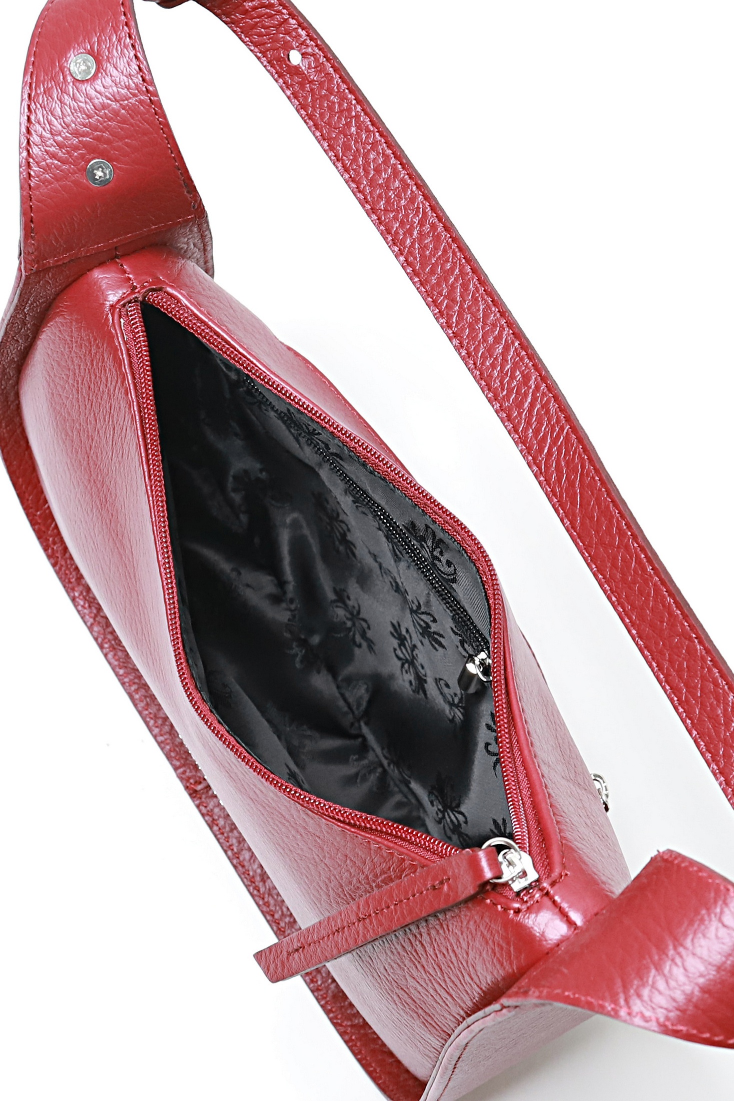 Сумка на одно отделение, закрывающееся на застёжку-молнию, с поводком на движке, с регулирующейся ручкой-ремнём максимальной длины 670+-10 мм, с украшением-лейбл на передней стенке, на задней стенке карман, закрывающийся на застёжку-молнию, фурнитура - никель.