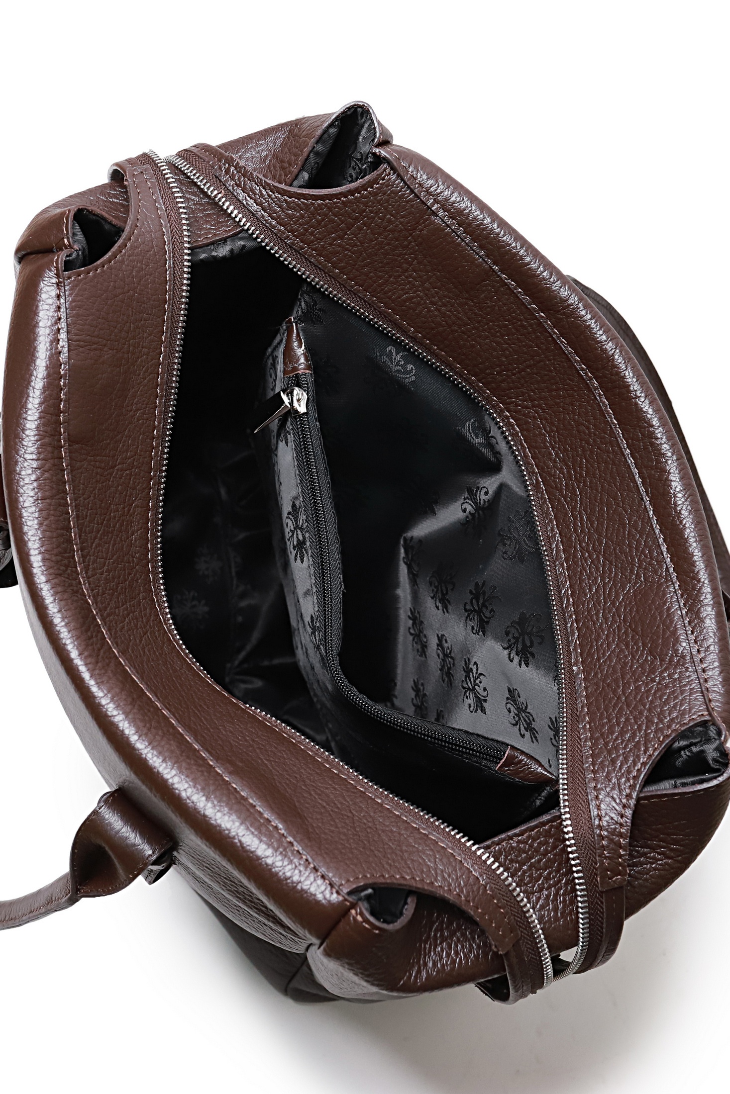 Сумка на одно отделение, закрывающееся на застежку-молнию и замок магнитку, с двумя ручками длиной 620+-10мм, со шлевками на ручках, с карманом на задней стенке, закрывающимся на застежку-молнию, с пуклями на дне. Цвет фурнитуры - никель.