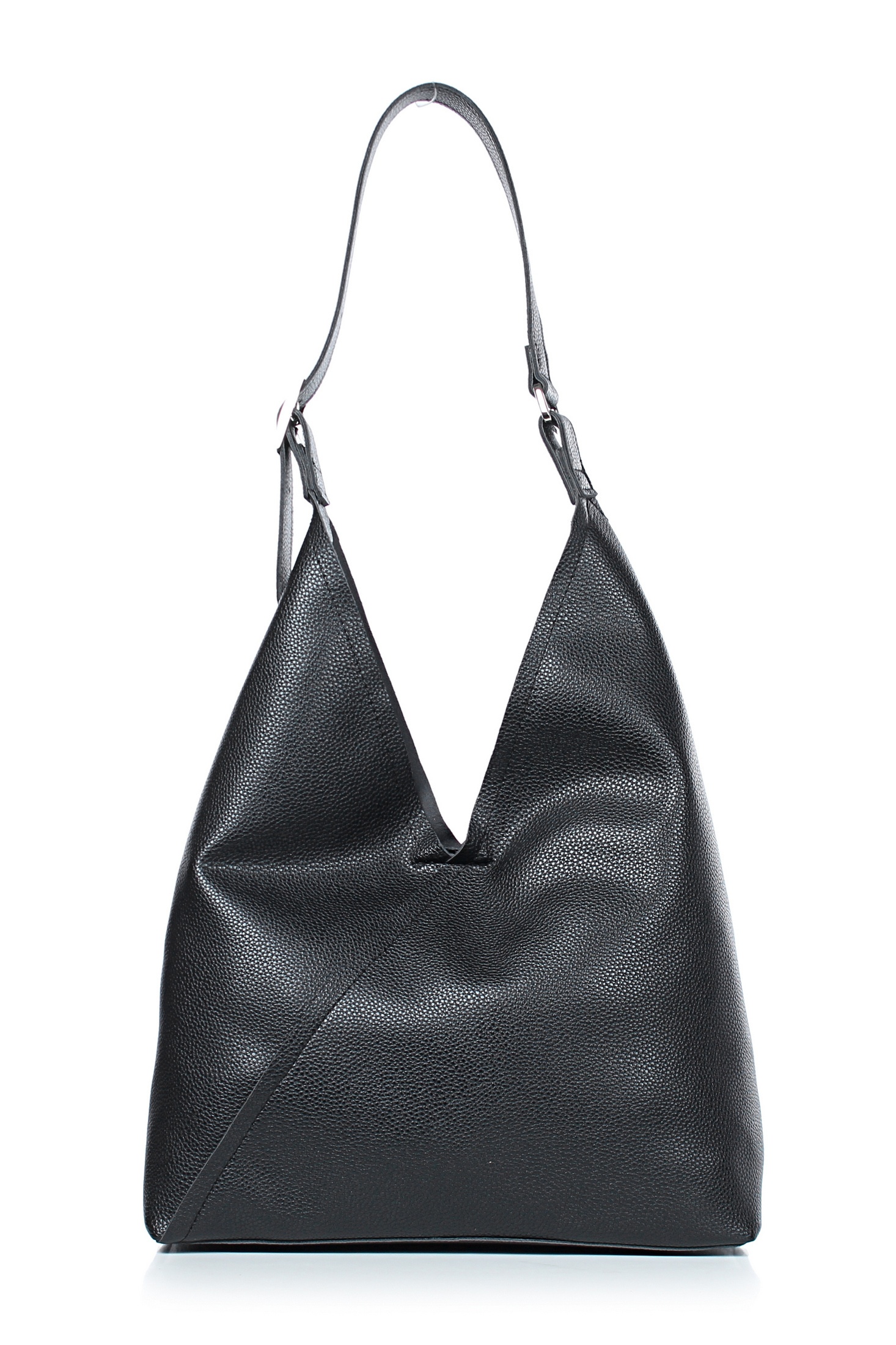 Сумка на одно отделение, закрывающееся на малый клапан на замок-магнитку, с несъемной регулирующейся ручкой максимальной длины 560+-10 мм, с боковыми ручкодержателями, с декоративными строчками по бокам. Цвет фурнитуры - никель. Сумка без подкладки.