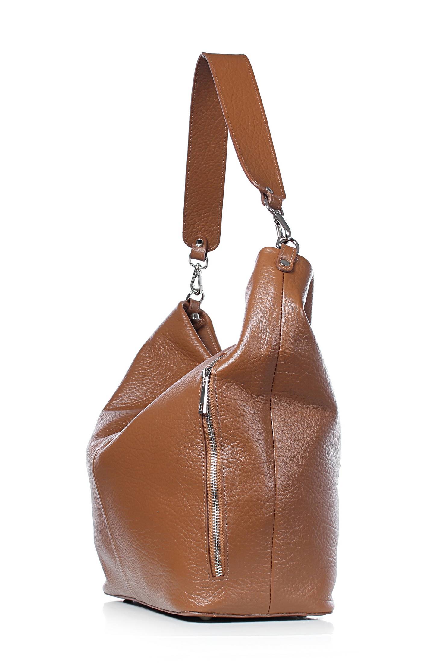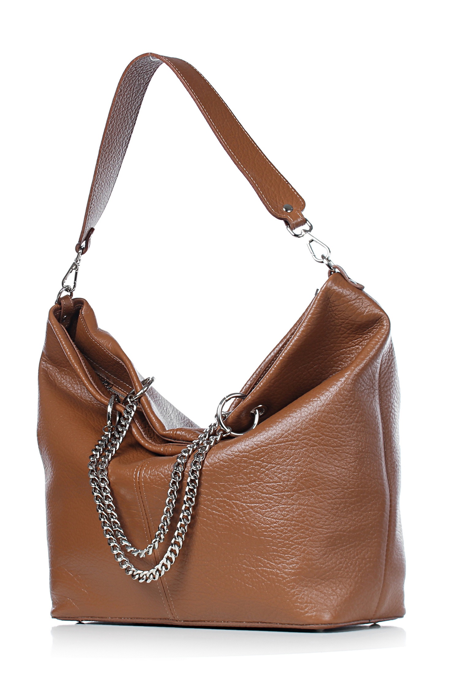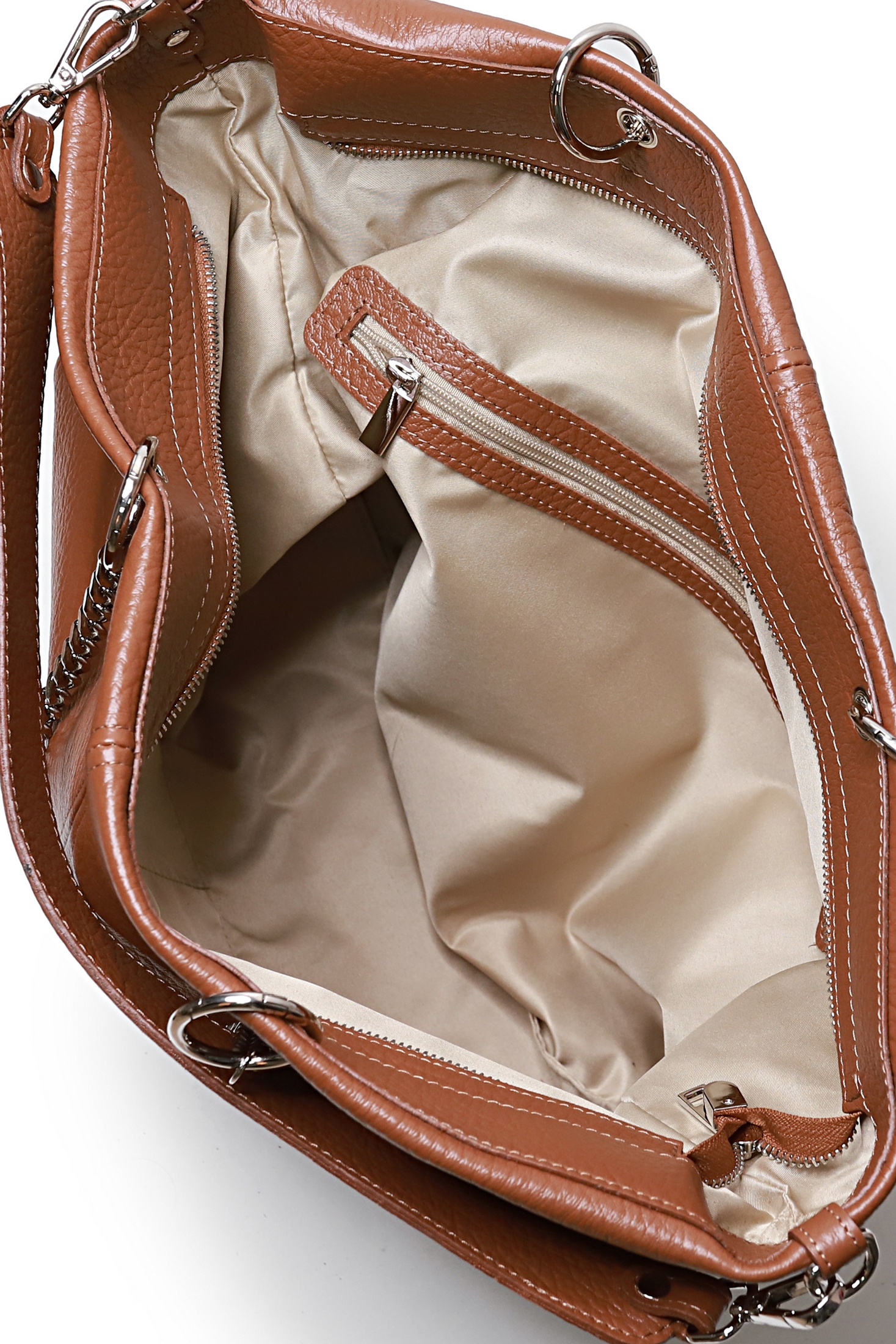 Сумка на одно отделение, закрывающееся на застёжку-молнию, с одной съемной ручкой длиной 480+-10 мм, с двумя ручками из цепи длиной 350+-10 мм, с боковыми держателями, на задней стенке карман, закрывающийся на застежку-молнию, с пуклями на дне. Цвет фурнитуры - никель. Сумка на подкладке, с открытым карманом с украшением, с подвесным карманом, закрывающимся на застёжку-молнию, с декоративной накладкой на кармане.