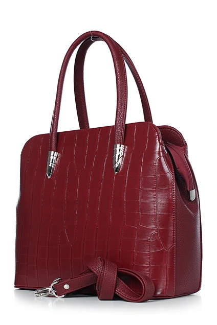 Сумка на одно отделение, закрывающееся на застежку-молнию, с двумя ручками длиной 450+-10 мм на металлических ручкодержателях, с ручкой-ремнем на карабинах длиной 1150+-10мм, на задней стенке карман, закрывающийся на застежку-молнию, фурнитура - никель. Сумка на подкладке, с открытым карманом, с карманом-перегородкой, закрывающимся на застежку-молнию.