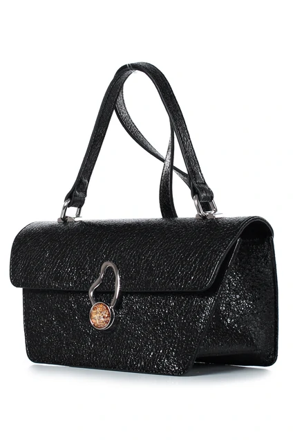 Сумка на одно отделение, закрывающееся клапаном на замок-вертушку, с одной короткой ручкой длиной 770+-10мм. Цвет фурнитуры - никель. Сумка на подкладке, с подвесным карманом, закрывающимся на застежку-молнию, с декоративной накладкой на кармане.