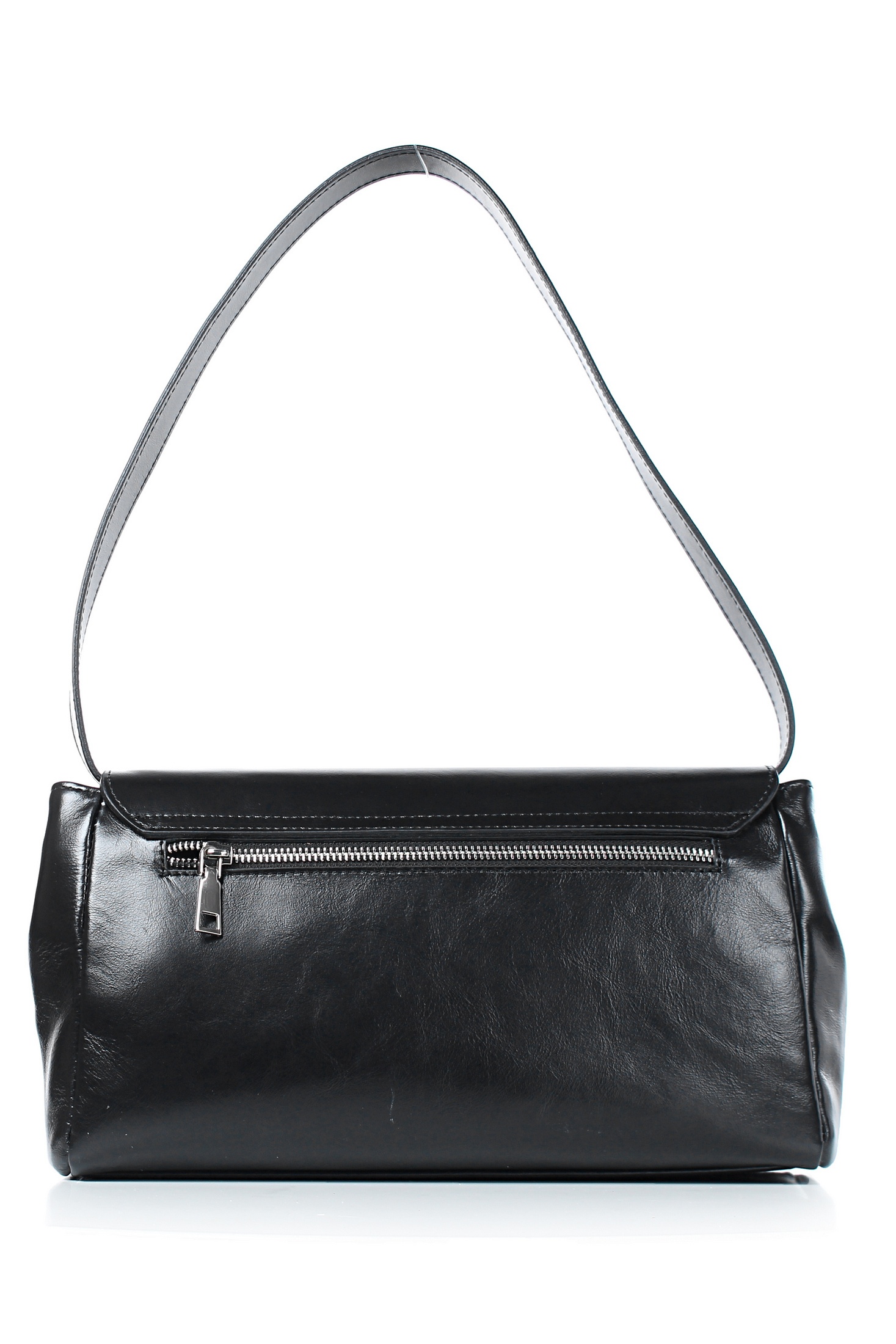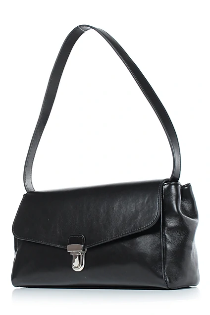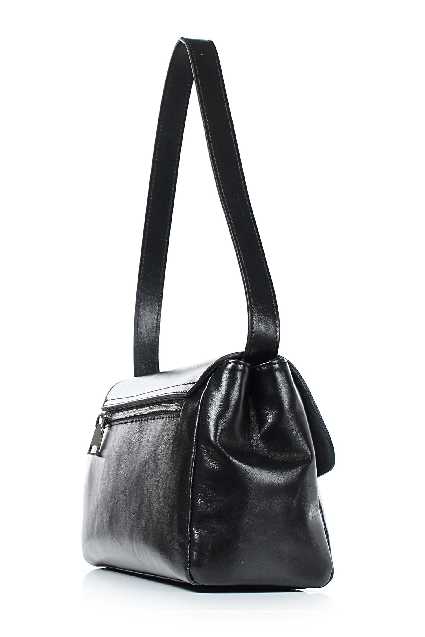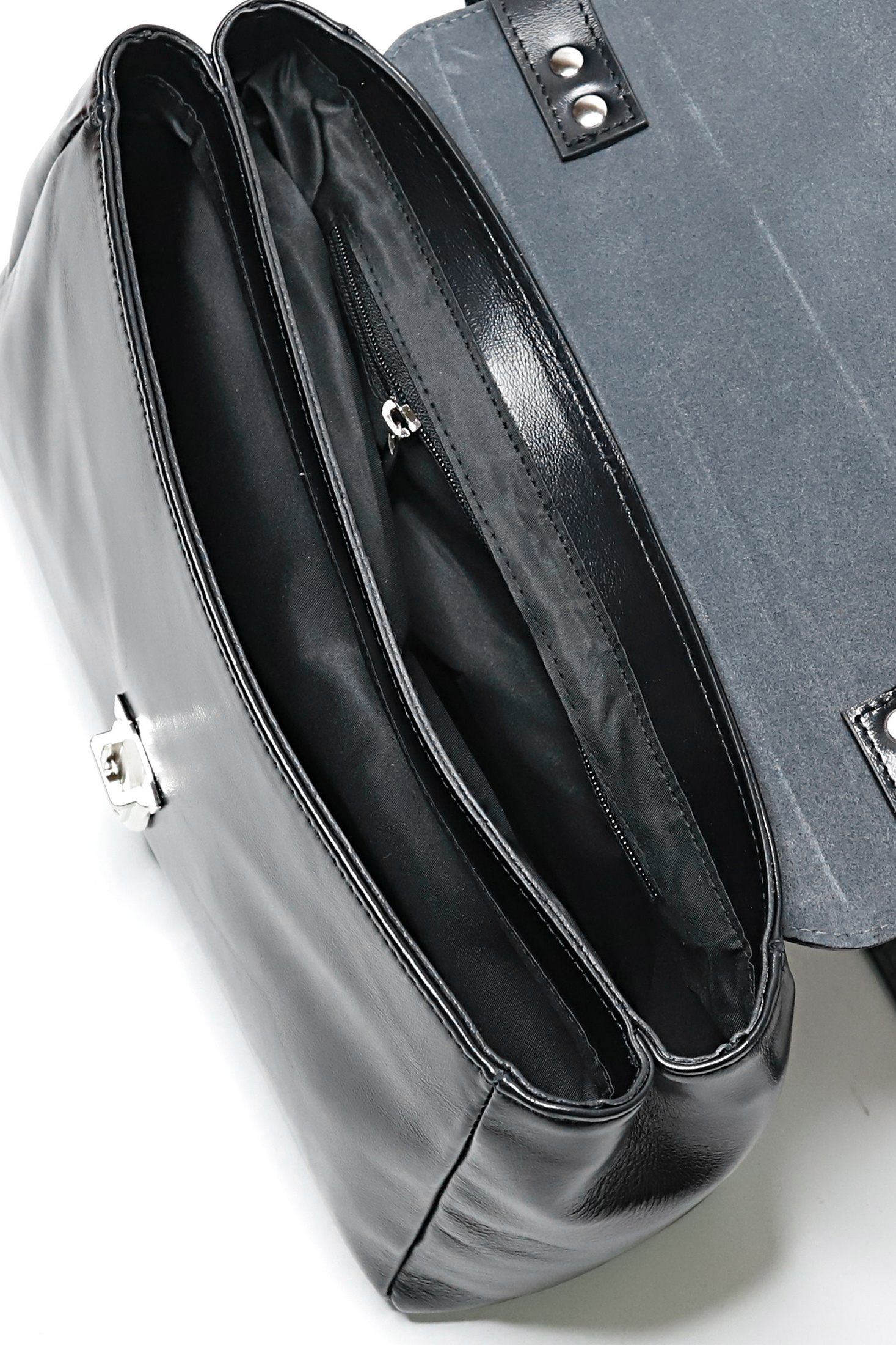 Сумка на два отделения, закрывающиеся клапаном на цупферный замок, с одной удлиненной ручкой длиной 680+-10 мм, с карманом на задней стенке, закрывающимся на застёжку-молнию. Цвет фурнитуры - никель. Сумка на подкладке, с открытым карманом с украшением, с подвесным карманом, закрывающимся на застёжку-молнию, с футляром для пластиковых карт.
