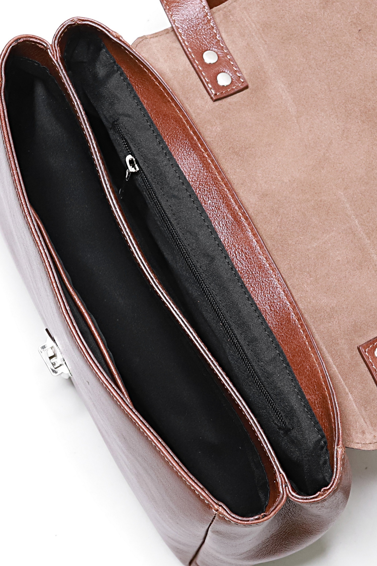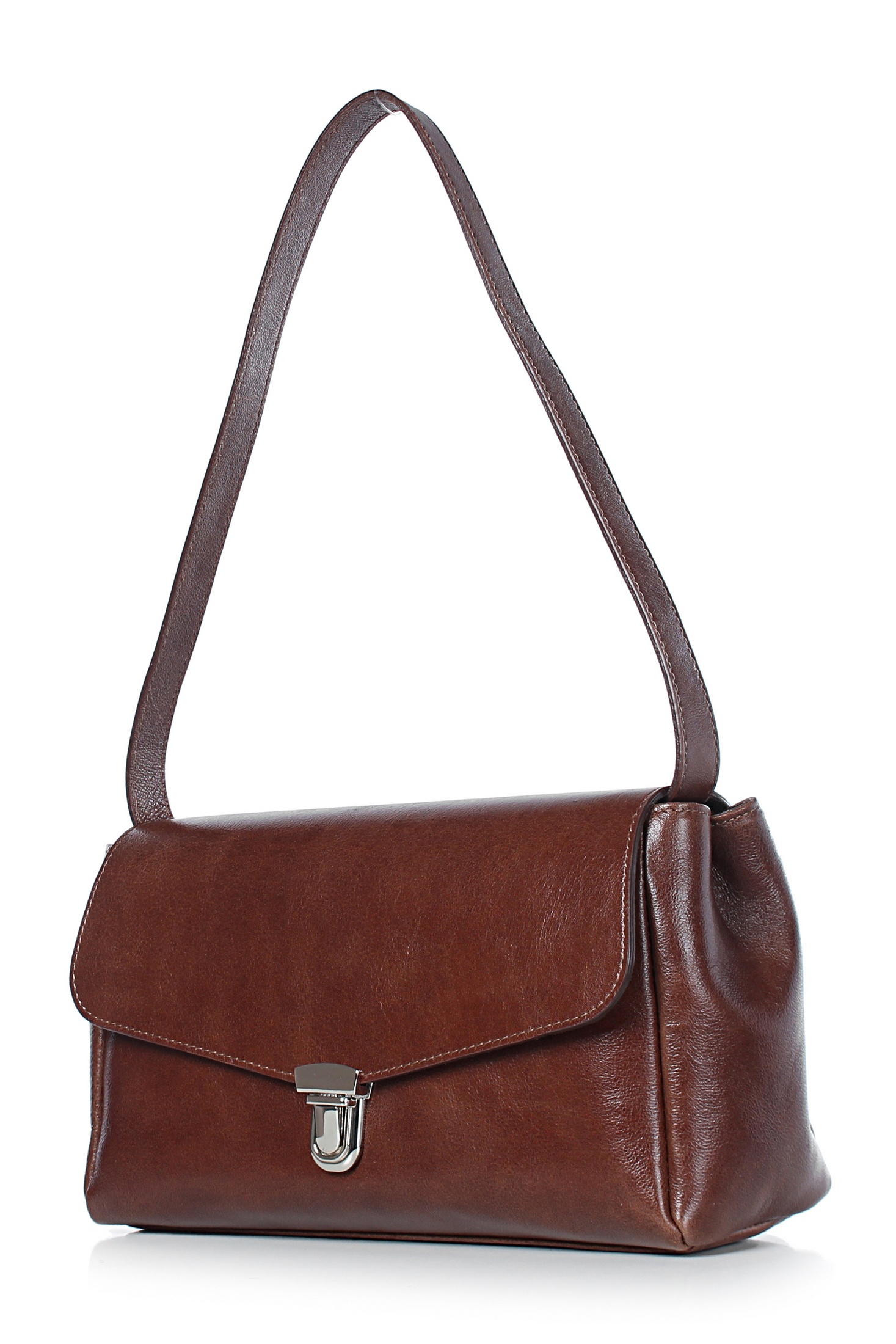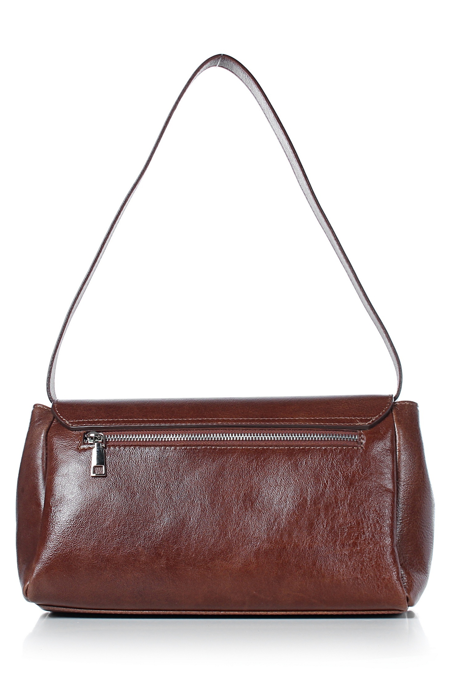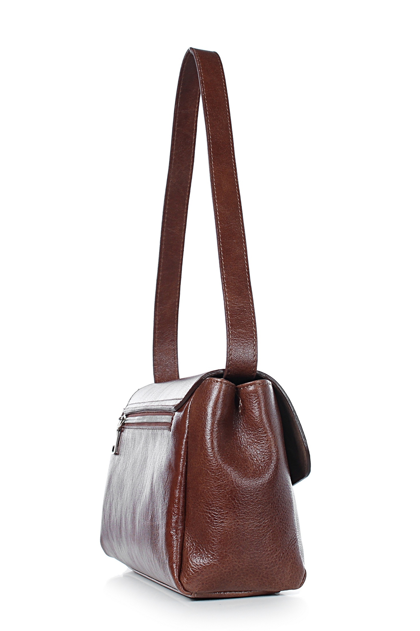 Сумка на два отделения, закрывающиеся клапаном на цупферный замок, с одной удлиненной ручкой длиной 680+-10 мм, с карманом на задней стенке, закрывающимся на застёжку-молнию. Цвет фурнитуры - никель. Сумка на подкладке, с открытым карманом с украшением, с подвесным карманом, закрывающимся на застёжку-молнию, с футляром для пластиковых карт.