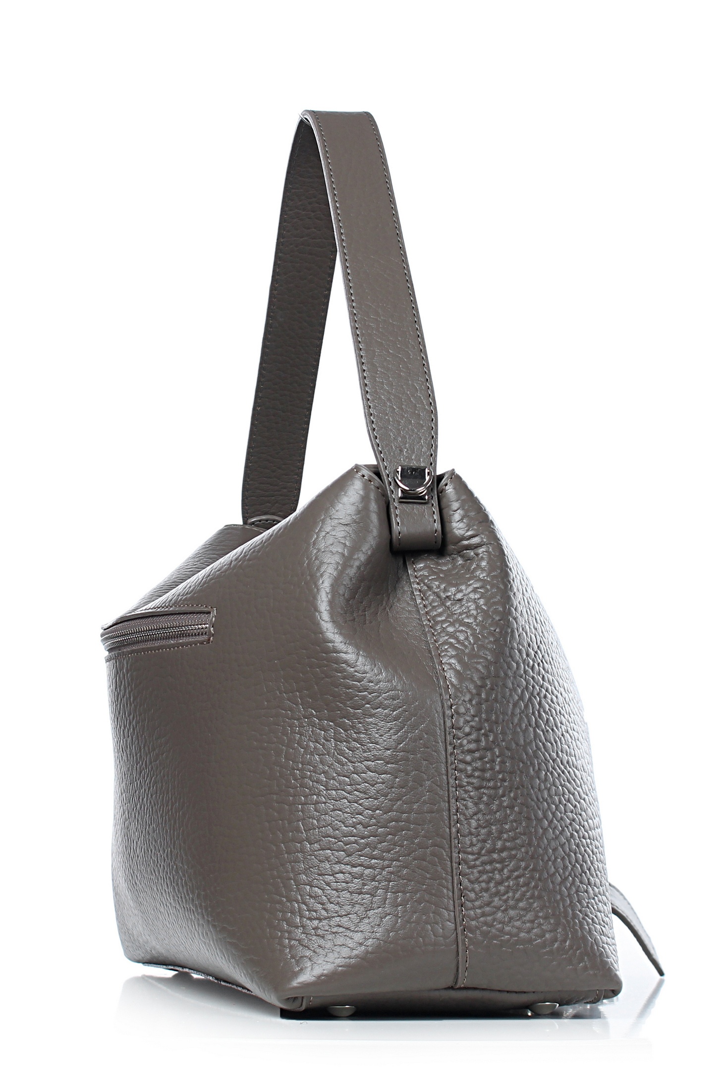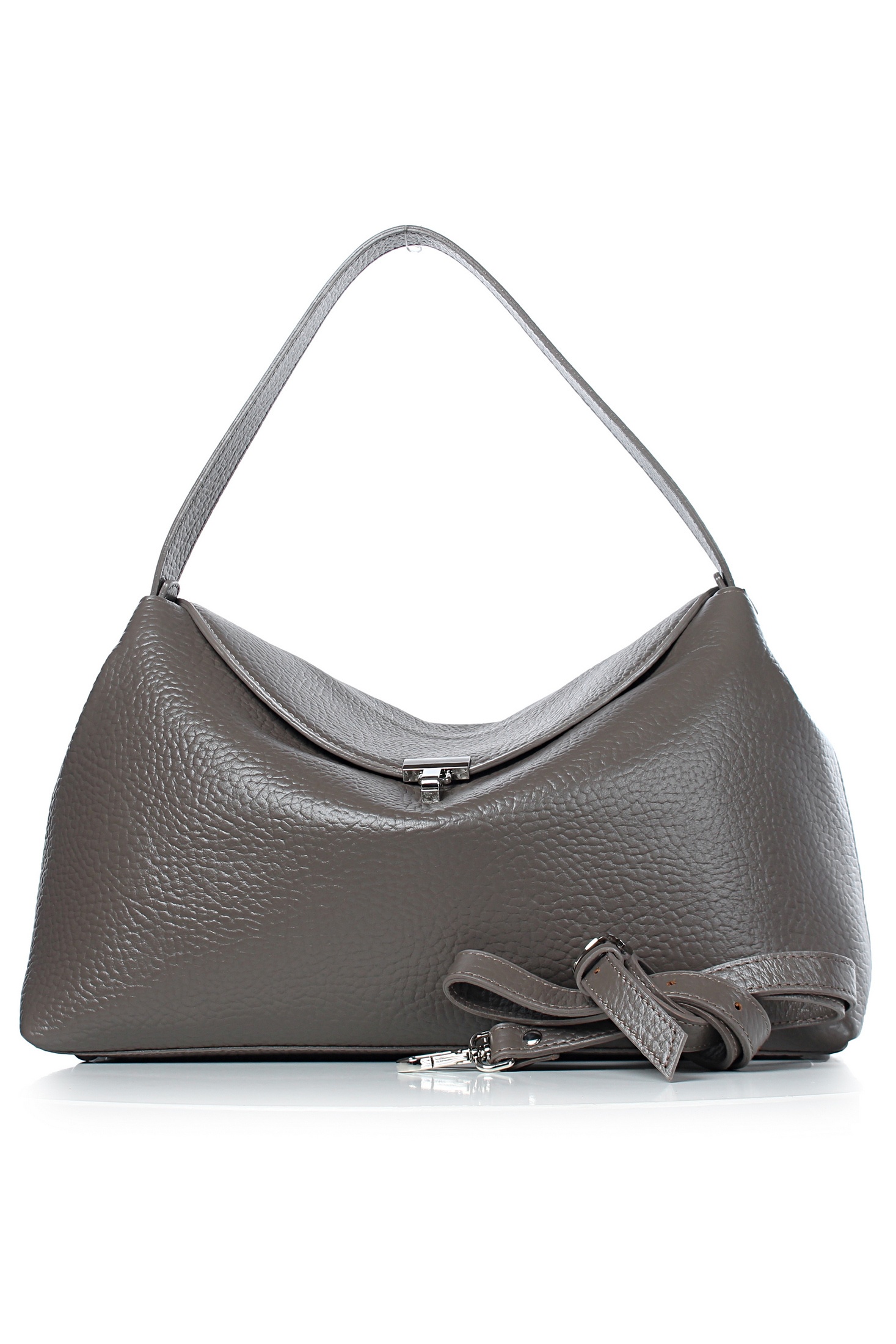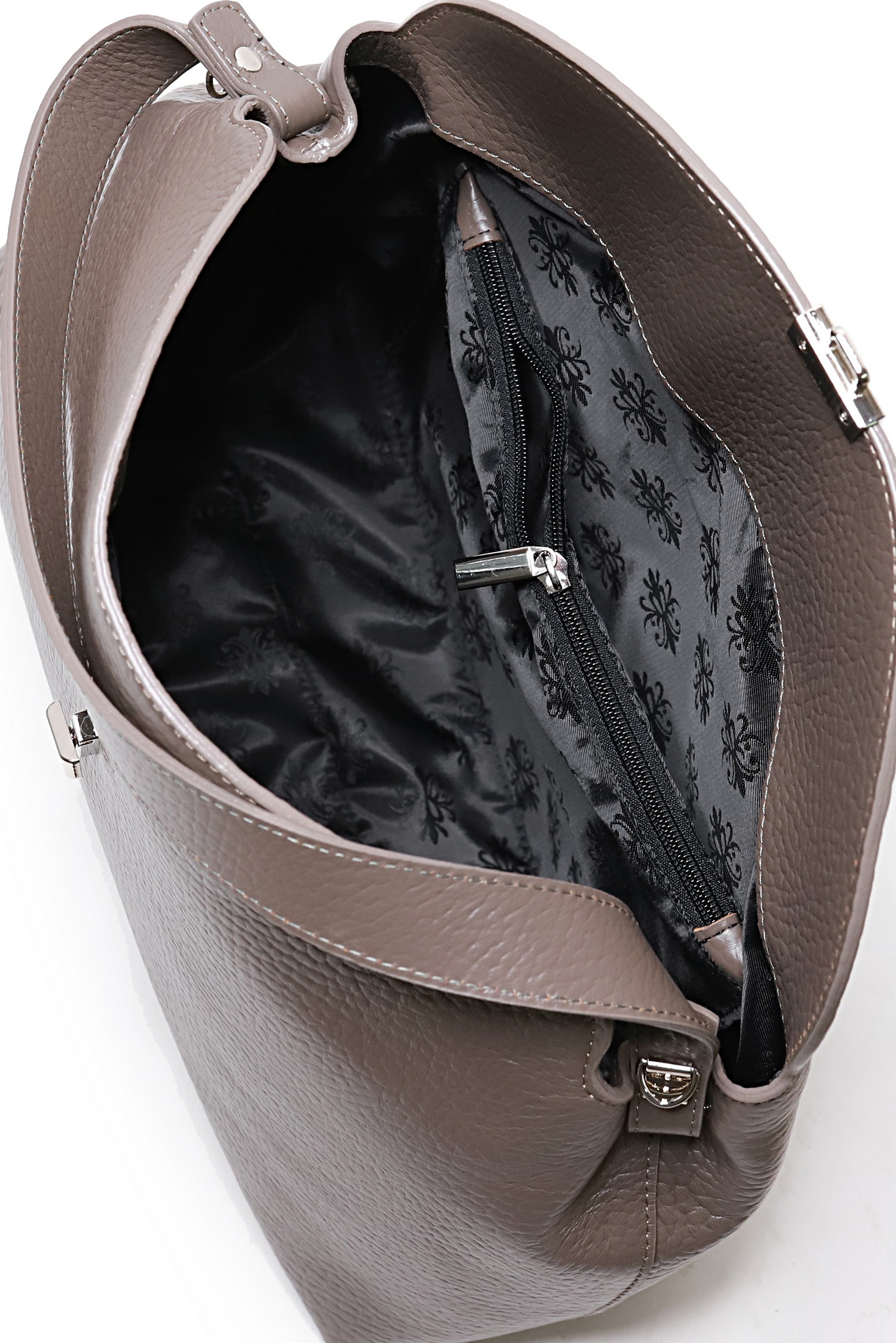 Сумка на одно отделение, закрывающееся клапаном на замок-вертушку, с карманом на задней стенке, закрывающимся на застежку-молнию, с одной короткой ручкой длиной 480+-10 мм, со съемной регулирующейся ручкой-ремнем максимальной длины 1190+-10 мм. Цвет фурнитуры - никель. Сумка на подкладке, с открытым накладным карманом с украшением, с карманом-перегородкой, закрывающимся на застежку-молнию.