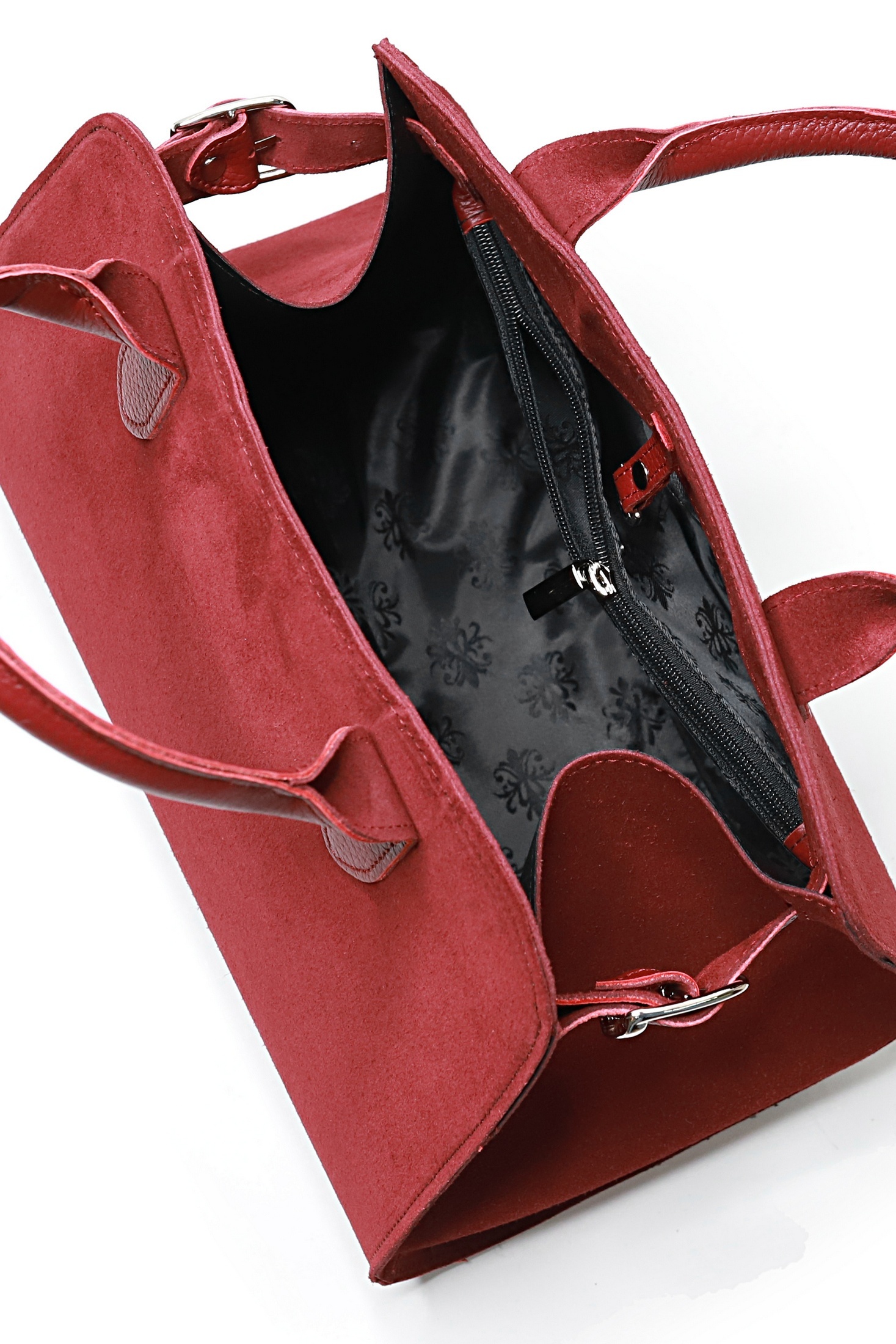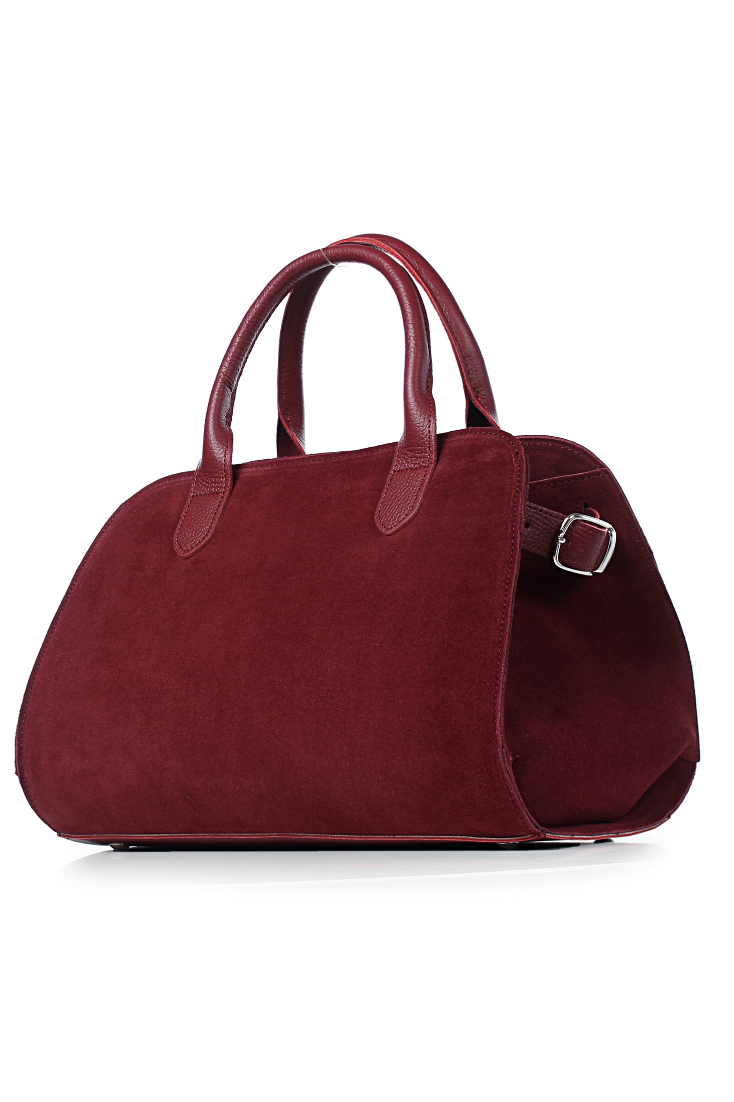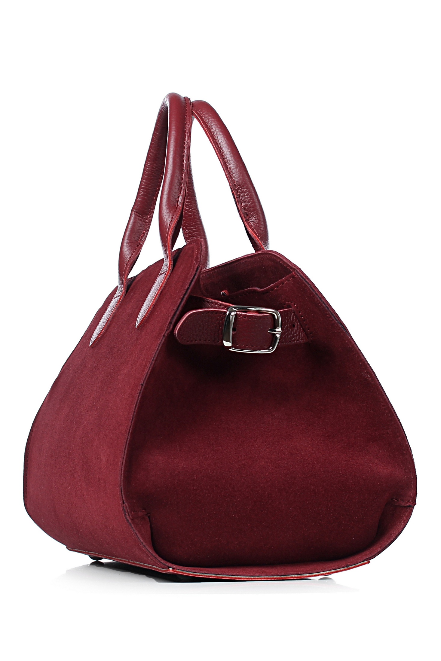 Сумка на одно отделение, закрывающееся на карабин, с двумя короткими ручками длиной 380+-10 мм, с двумя боковыми стяжными ремнями, с пуклями на дне. Цвет фурнитуры - никель. Сумка на подкладке, с открытым карманом с украшением, с карманом-перегородкой, закрывающимся на застёжку-молнию и соединенным с задней стенкой замком-магниткой.