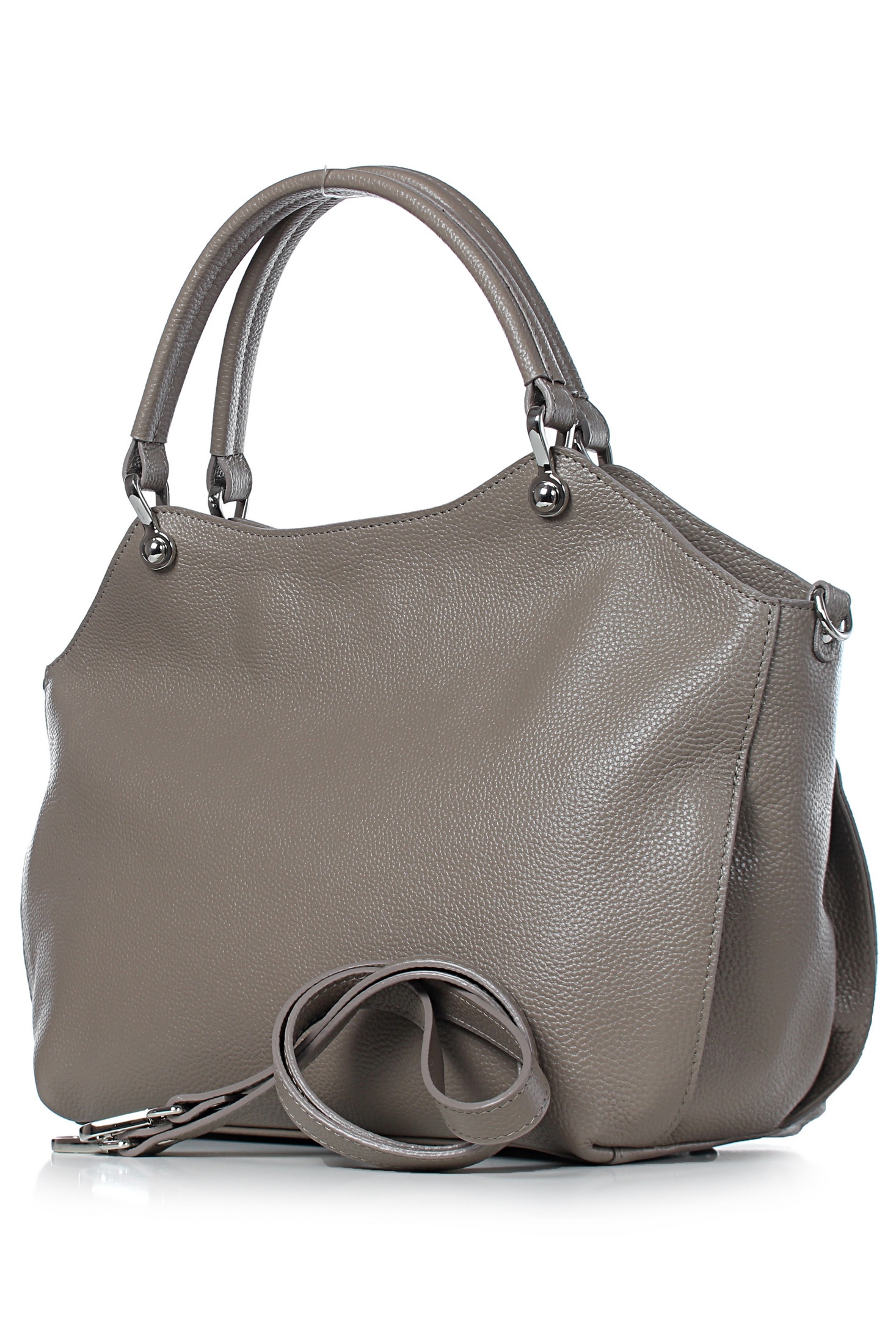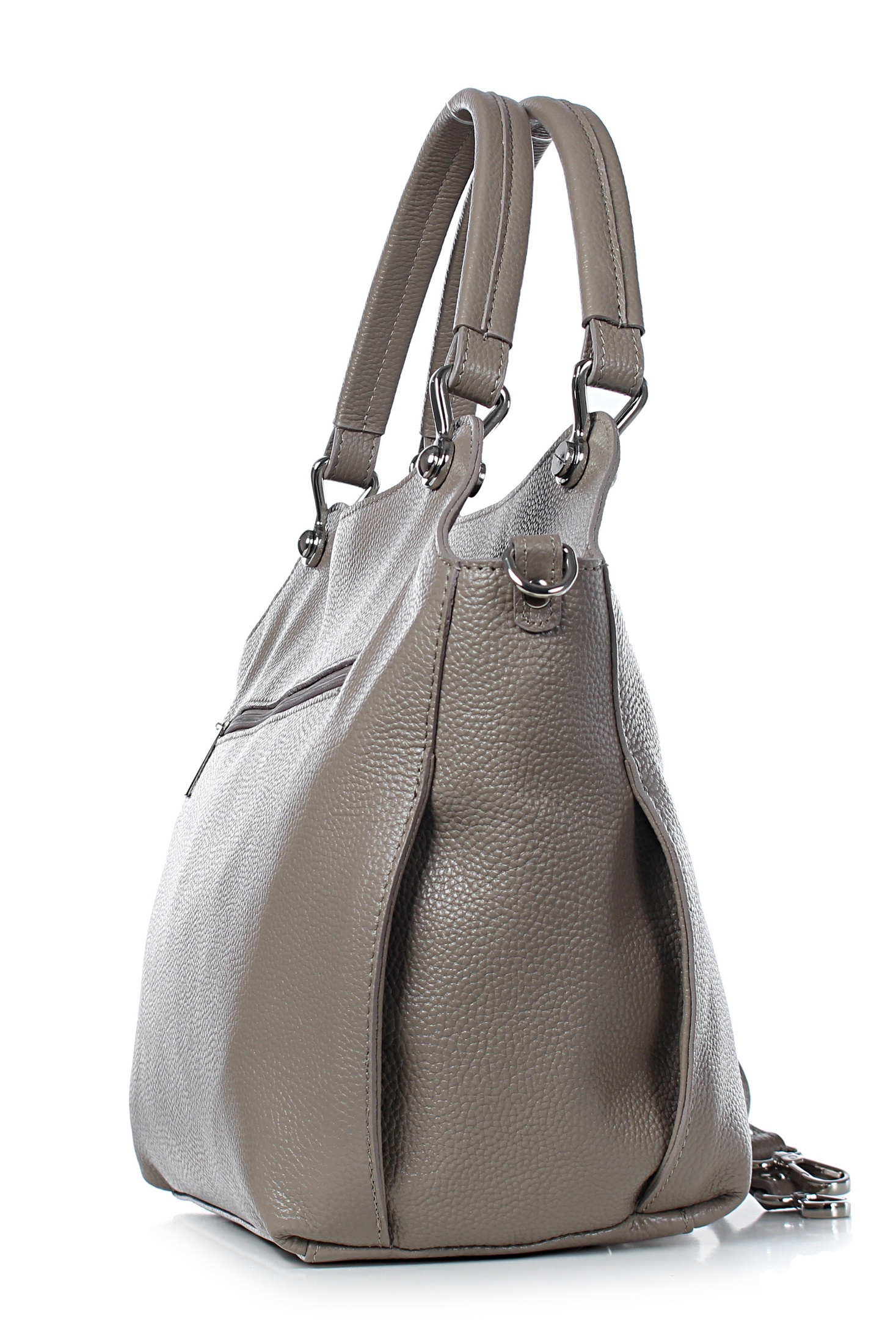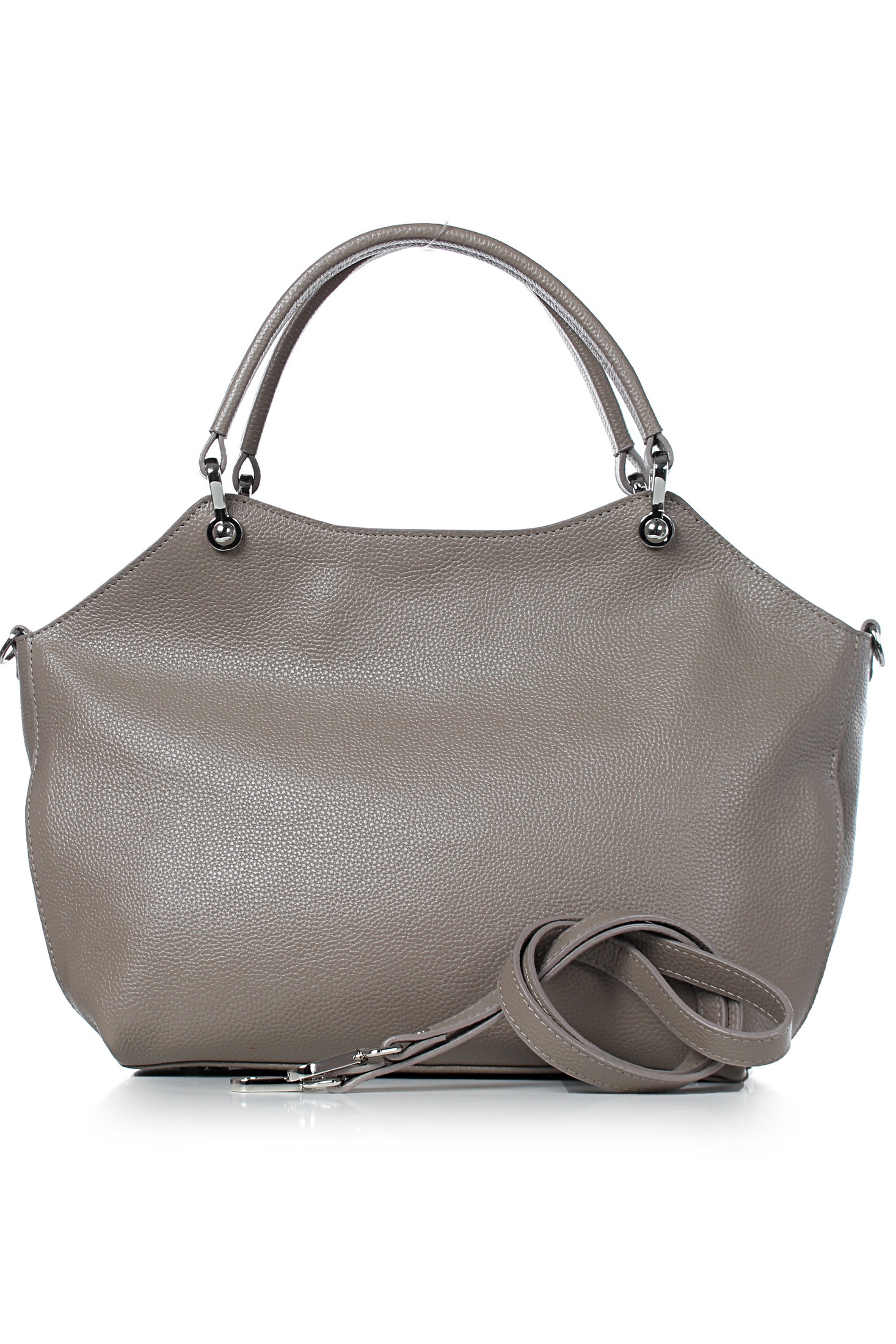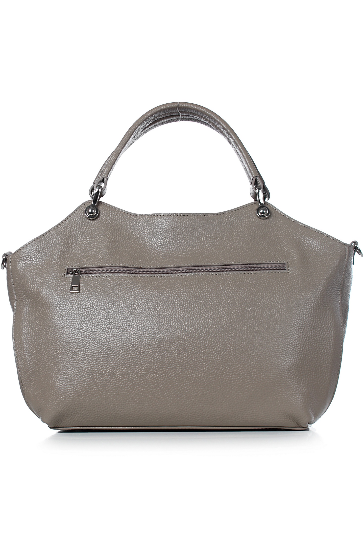 Сумка на одно отделение, закрывающееся на застежку-молнию, с двумя короткими ручками длиной 345+-10 мм, с обтяжкой на ручках, со съемной нерегулирующейся ручкой-ремнем длиной 1030+-10 мм, с карманом на задней стенке, закрывающимся на застежку-молнию, с боковыми держателями ручки-ремня, с пуклями на дне. Цвет фурнитуры-никель.
