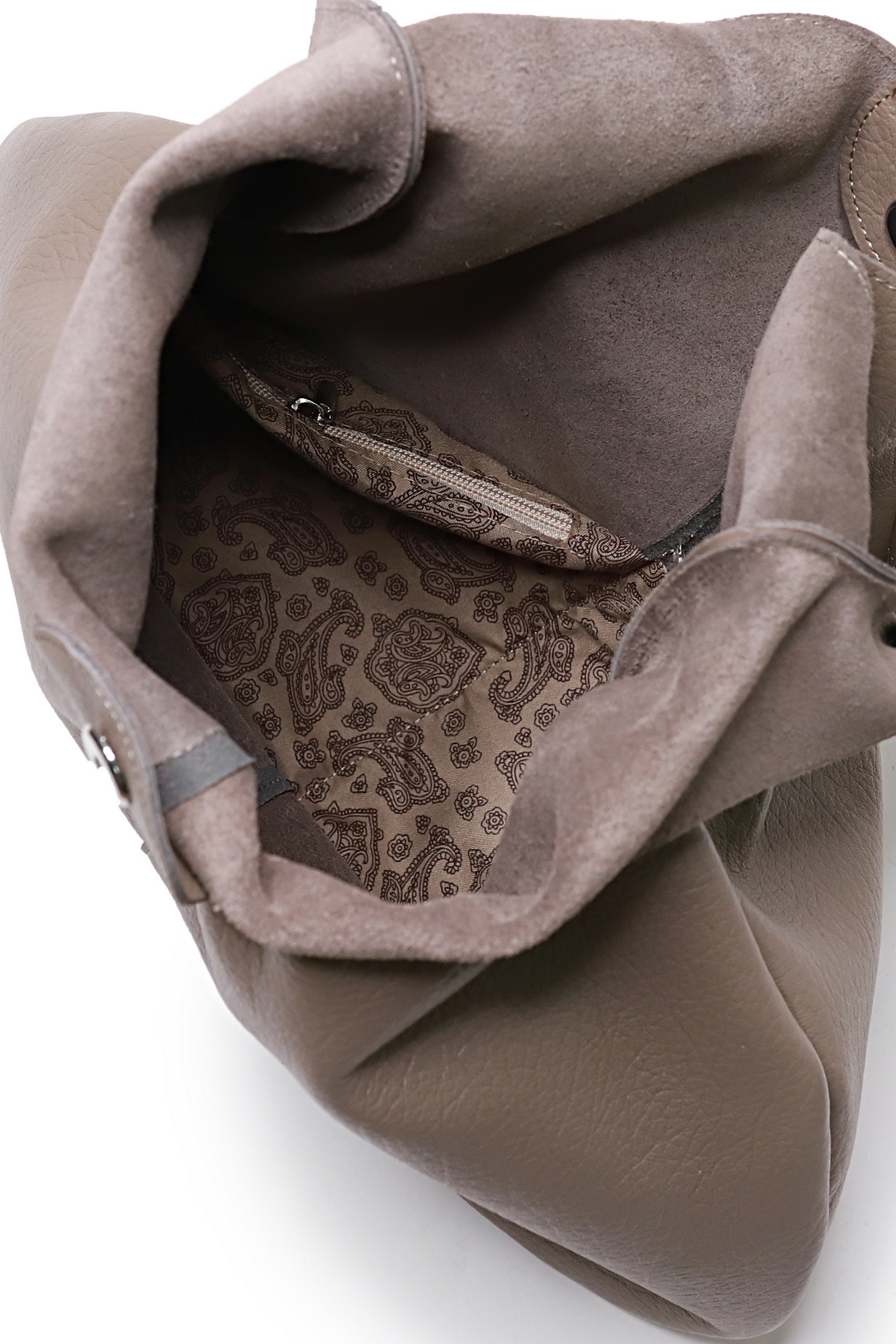 Сумка без подкладки, с открытым карманом, с карманом, закрывающимся на застежку-молнию.