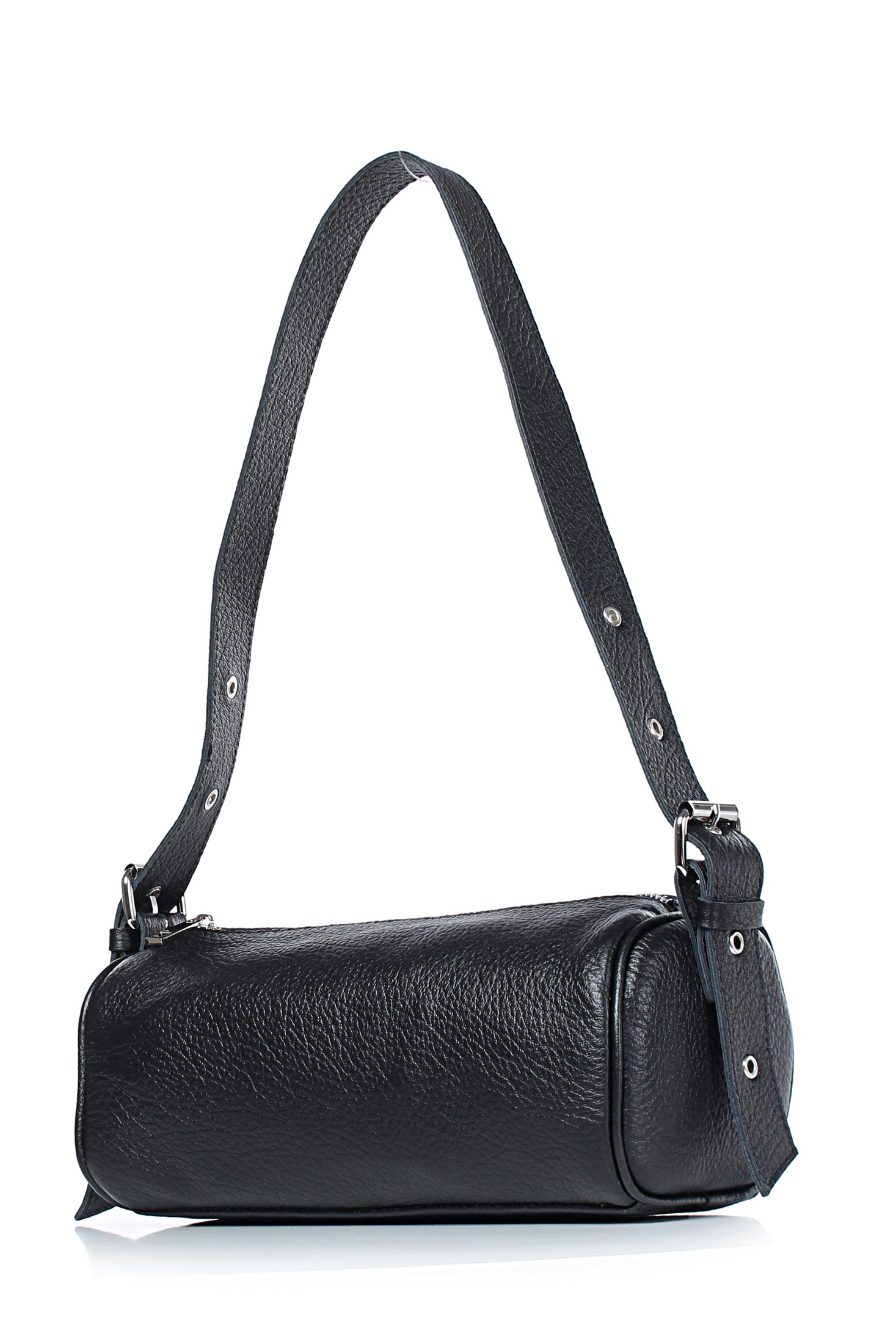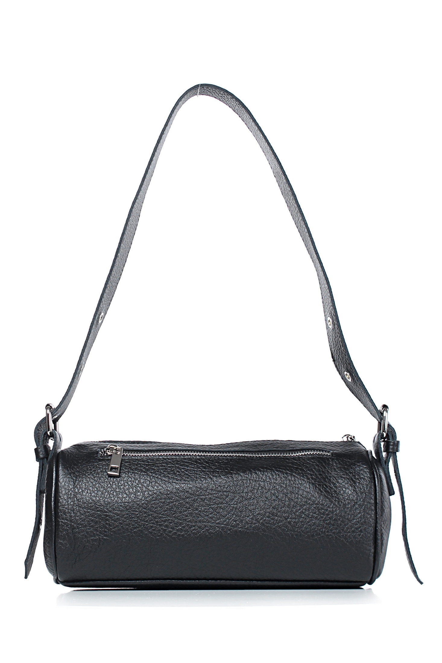 Сумка на одно отделение, закрывающееся на застежку-молнию, с карманом на задней стенке, закрывающимся на застежку-молнию, с боковыми держателями, с удлиненной регулирующейся ручкой максимальной длины 970+-10 мм, с обтяжкой кедера. Цвет фурнитуры - никель.