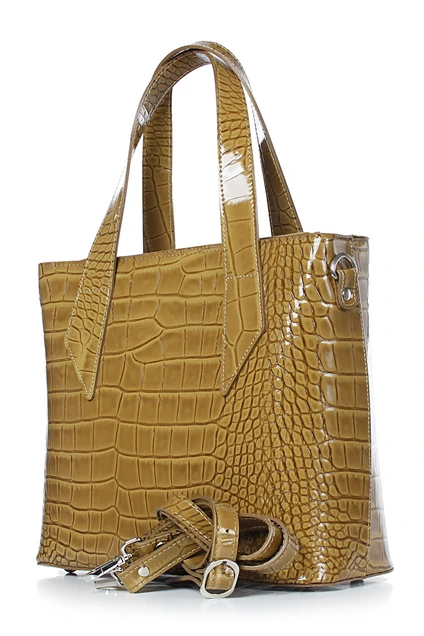 Сумка на одно отделение, закрывающееся на застежку-молнию, с двумя ручками длиной 470+-10 мм, с ручкой-ремнем на карабинах максимальной длины 1210+-10 мм, с боковыми ручкодержателями на заклепках, с пуклями на дне, на задней стенке карман, закрывающийся на застежку-молнию, цвет фурнитуры - никель. Сумка на подкладке, с открытым карманом с украшением, с подвесным карманом, закрывающимся на застежку-молнию, с карманом-перегородкой, тоже закрывающимся на застежку-молнию, с футляром для пластиковых карт.