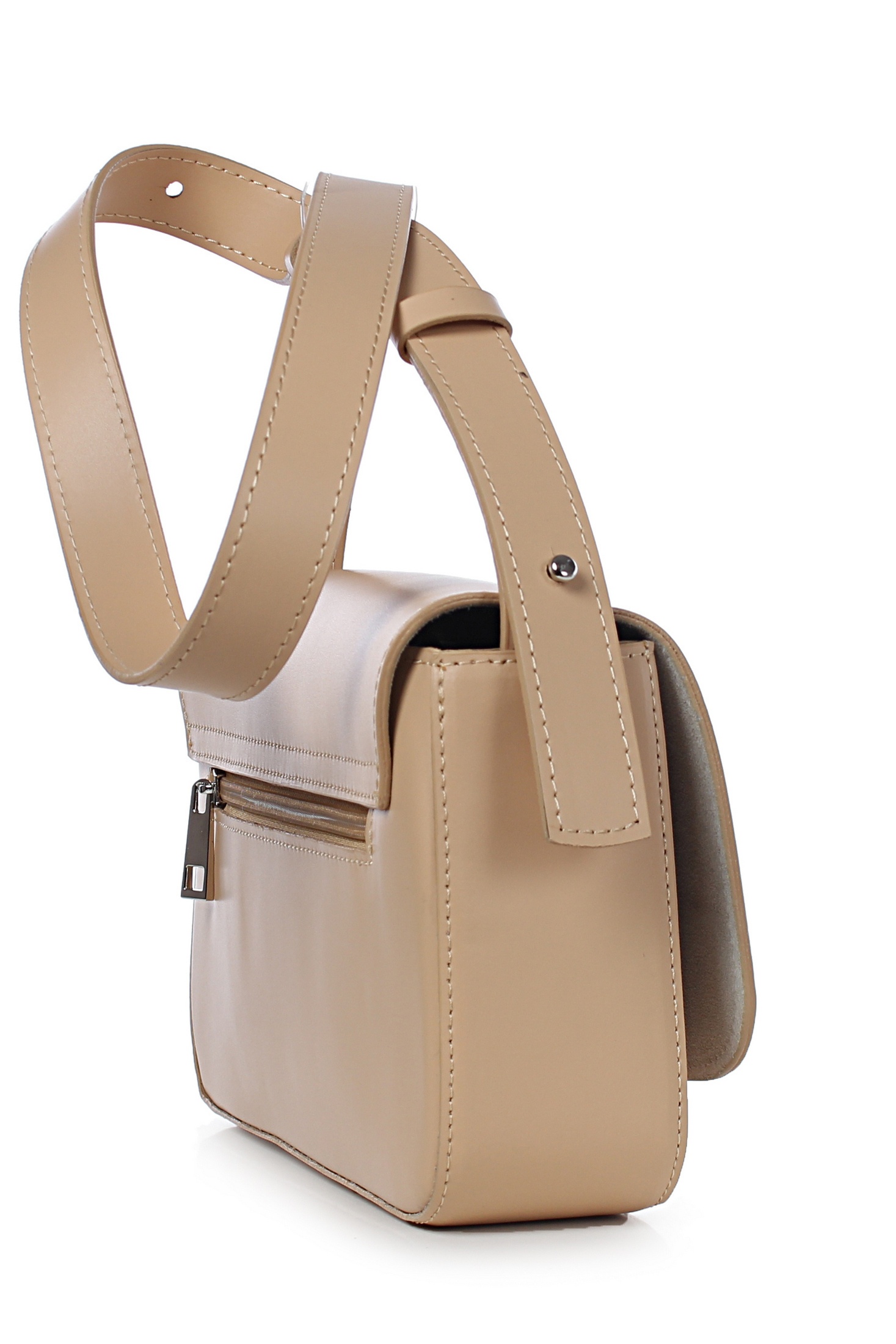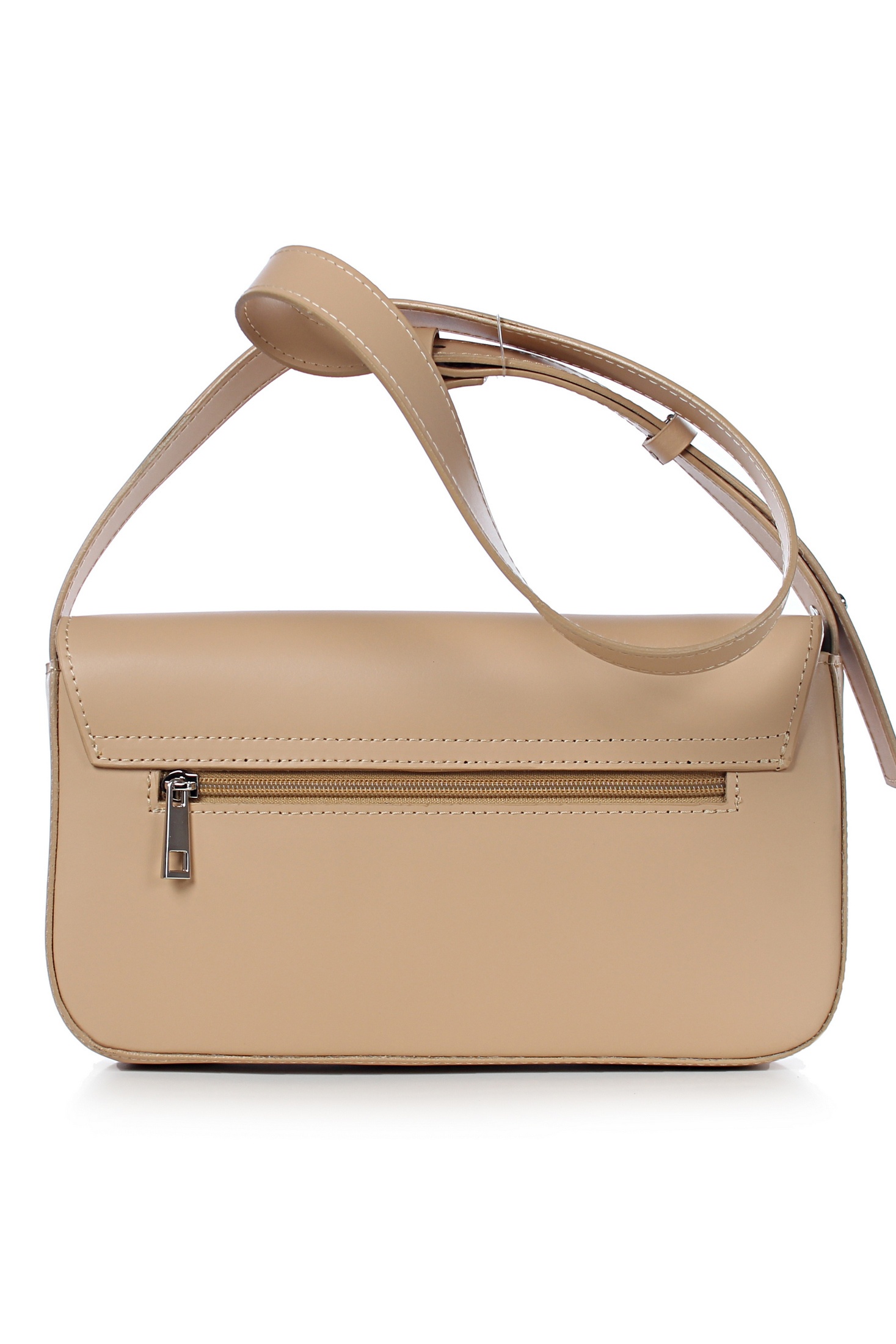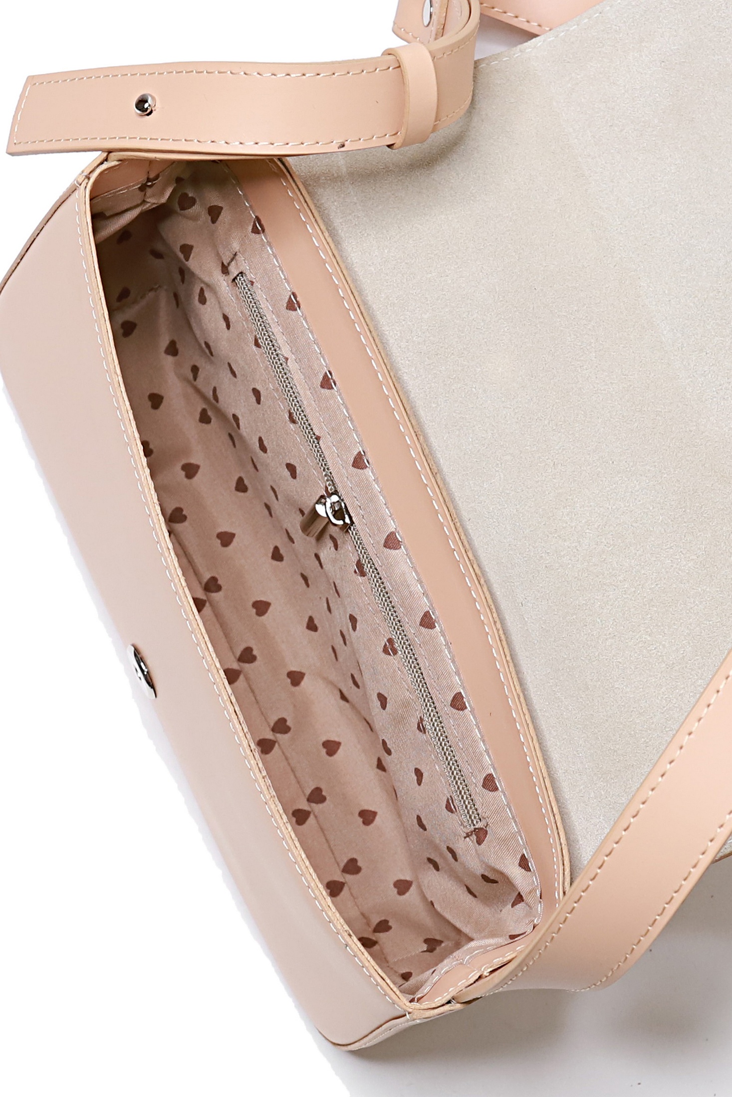 Сумка на одно отделение, закрывающееся клапаном на замок-магнитку, с ручкой-ремнем максимальной длины 1040+-10 мм, с карманом на задней стенке, закрывающимся на застежку-молнию. Цвет фурнитуры - никель. Сумка на подкладке, с открытым карманом с украшением, с подвесным карманом, закрывающимся на застежку-молнию.